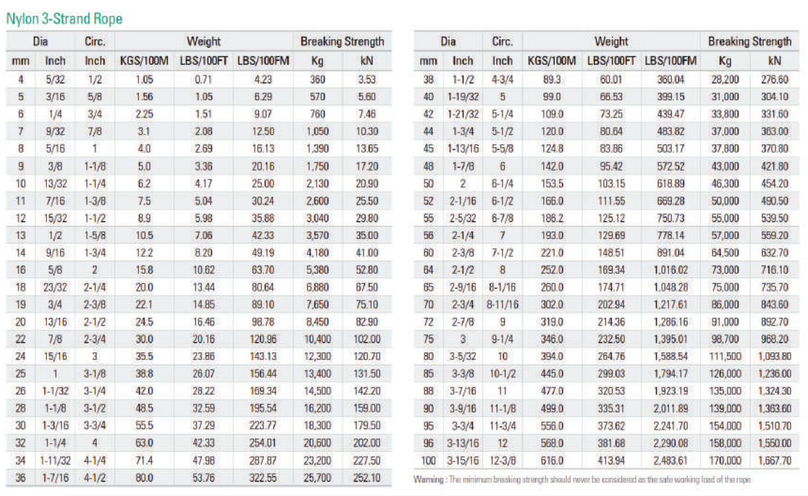 Nylon Rope has twice the strength of Manila Rope. It has high elongation (under load) when compared to other synthetic ropes. Nylon has high enegry absorption under shock and good abrasion resistance. When combined these characteristics makes nylon rope the best handing compared to other synthtics. It's utilized extensively in marine use such as mooring lines, towing slings, commercial fishing, uilityrope, lesure boat, seiling etc.