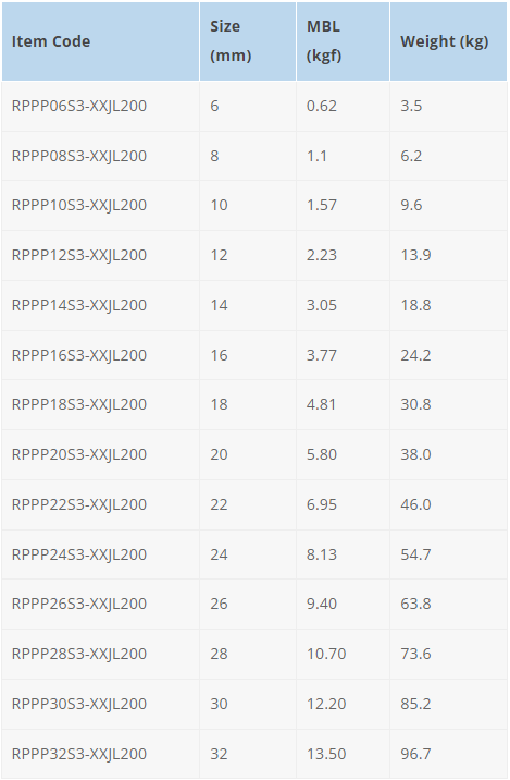 PP Rope 8-Strand, Natural White With Blue Tracer With 6ft PE Covered & 6 Tucks Eye Spliced At Both End