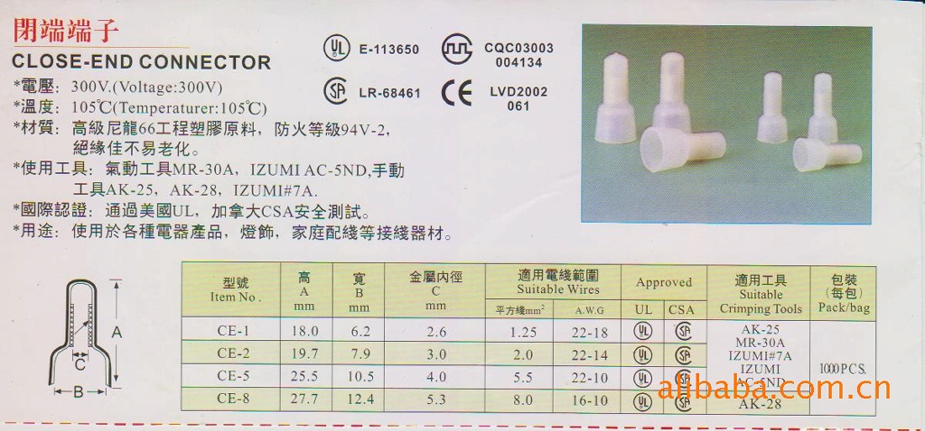 | Item No. | L1 | L2 | Ø1 | Ø2 | sq | AWG |