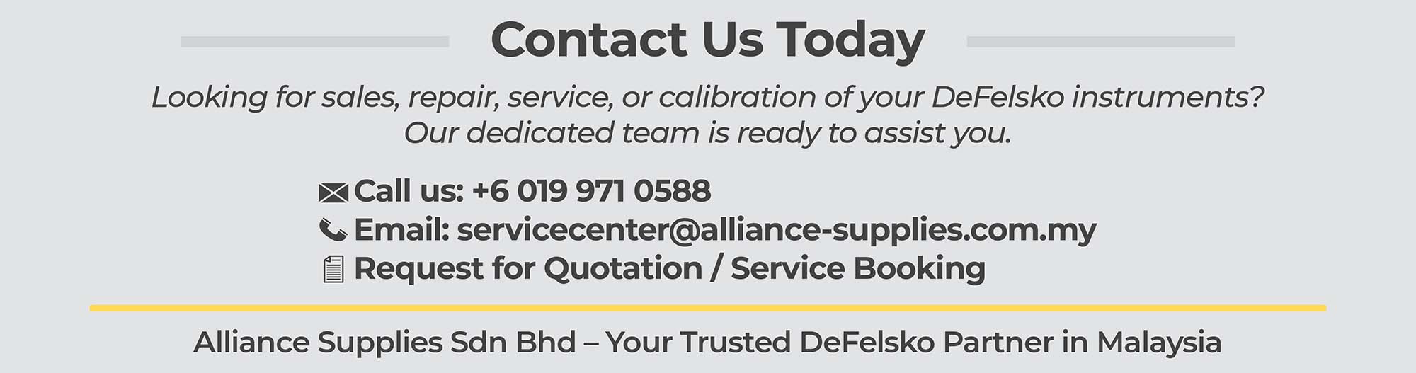Alliance Supplies Sdn Bhd is proud to be an Authorized DeFelsko Sales & Service Partner in Malaysia, providing customers with genuine products, expert repair, and certified calibration services.