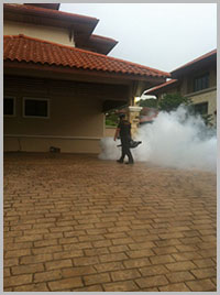 Spraying at all area that might be infected by mosquitoes or flies. *Introducing flies control management without using chemical spray.