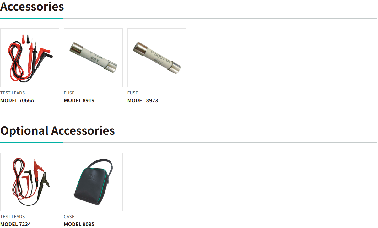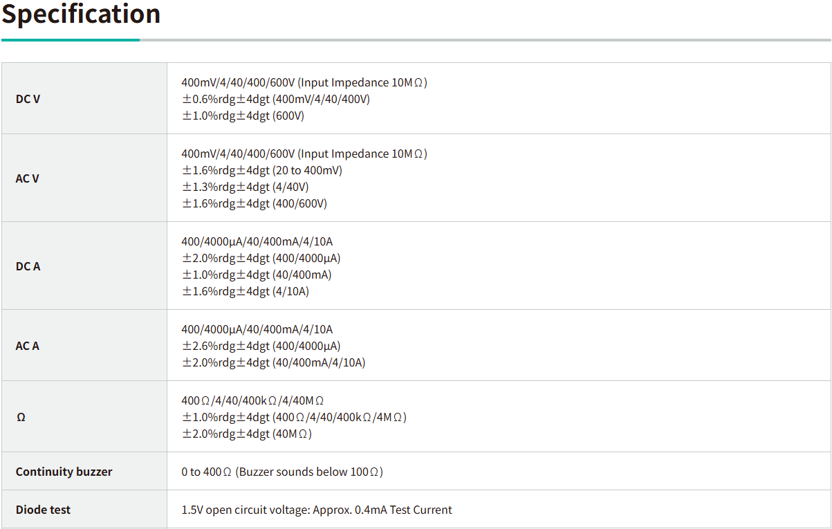 - Auto-ranging and manual ranging selector provided (with range hold feature)