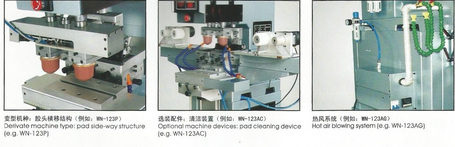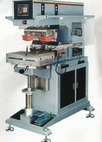 Machine of this series adopts two-color Inkwell, PlC control, independent pad up/down stroke and speed adjustable. cliché position adjustable, shuttle table or rotary worktable. Famous for their characteristics like two-color registration precision, high printing efficiency and easy operation, they can be widely applied to print on electronic products. home appliances, hardware, plastics, toys and stationery. satisfying various high-quality printing requirements.