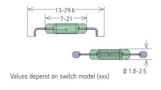 The MK23-90 surface mount reed switch is a (Form C) changeover or single pole double throw SPDT miniature (SMD) surface mount reed switch with glass length of 14mm and diameter of 2.54mm. Rated power 10 W, switching voltage 175 VDC, switching current 0.5 Amp DC. The MK23-90 surface mount reed switch is a bare glass version of our surface mount reed sensors, offering a more economic and compact design as compared to our over-molded reed sensors. Sold in Tape & Reel packing according to IEC 286/part 3 and is suitable for pick and place automation.