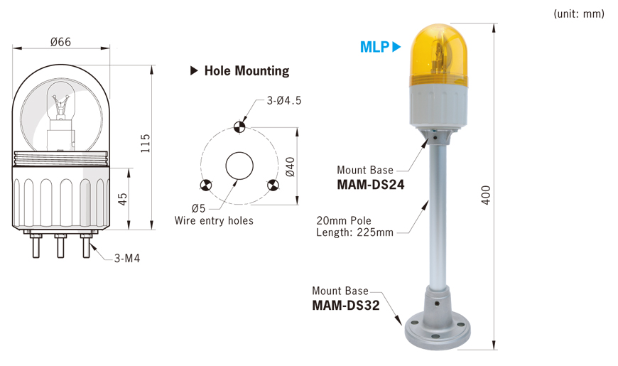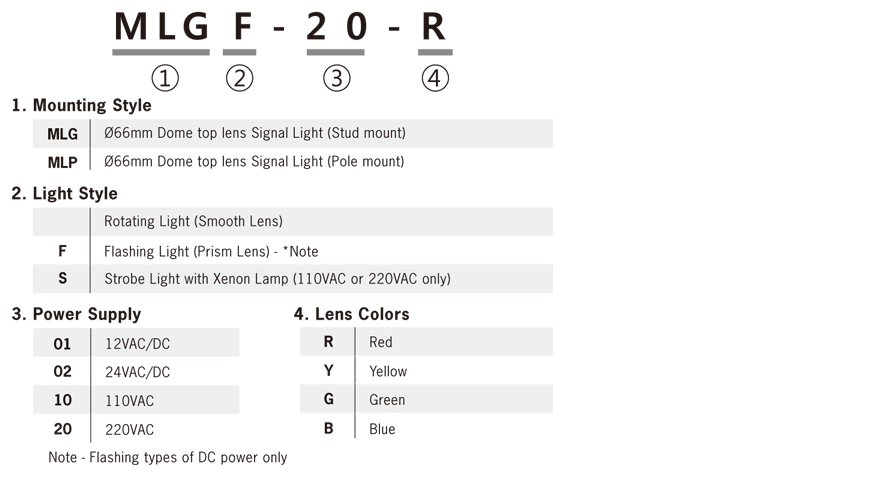 * Red, Yellow, Green and Blue lens available
