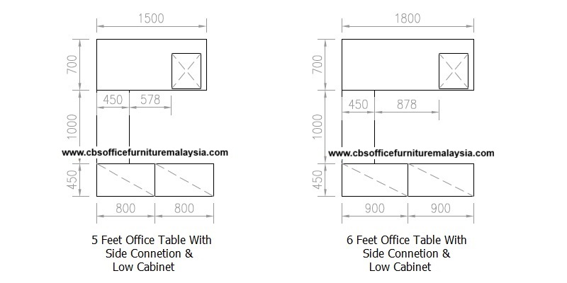 GENERAL 5 KAKI MEJA PEJABAT + KABINET RENDAH TANPA PINTU BERGANDA + SAMBUNGAN SISI MEJA TOP (AGT 157 + AT-YOO 7160 SET)