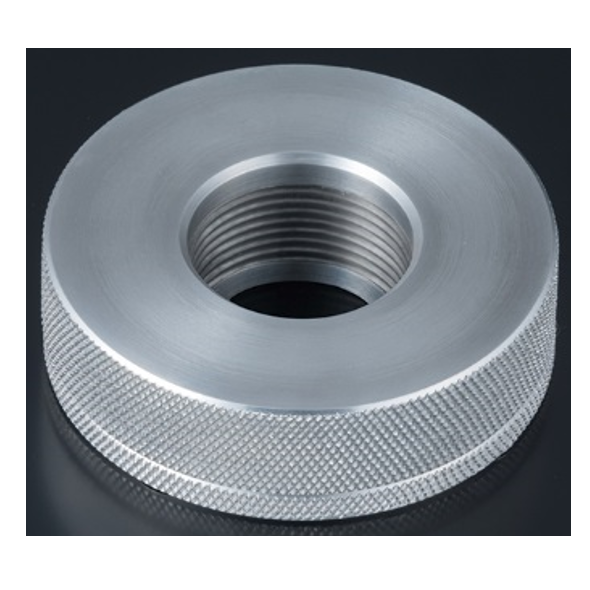 Thread Ring Gauge with Aluminum Outer Ring. Outer Ring is to have function of Guide Ring when measure with Thread Ring Gauge. When insert work-piece to Gauge, inner diameter of this ring prevent falling down or galling of work piece. No skill is in need to inspection work and create much improvement of working efficiency.