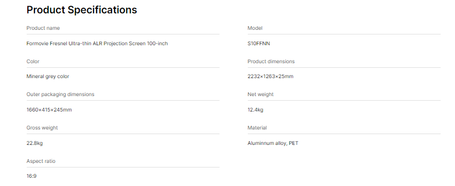 Formovie S10FFNN 100-Inch Fresnel Ultra-thin ALR Projection Screen