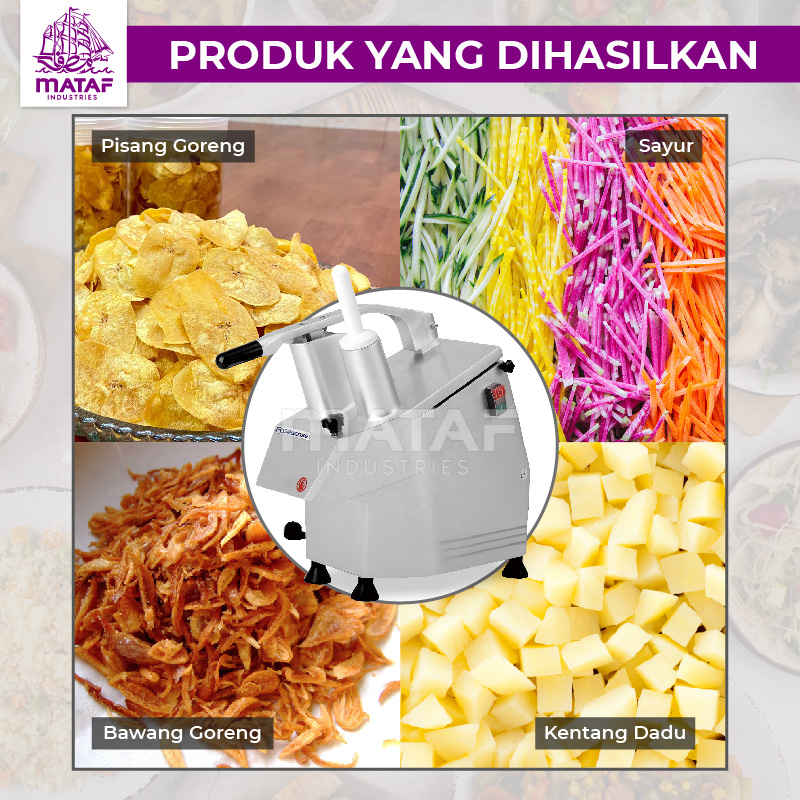 Mampu menghasilkan sehingga 300 kg sejam, sesuai untuk restoran, hotel, katering, dan kilang pemprosesan makanan. Mesin ini dilengkapi dengan suis keselamatan, reka bentuk padat, dan mudah dibersihkan, menjadikannya pilihan terbaik untuk dapur komersial moden.