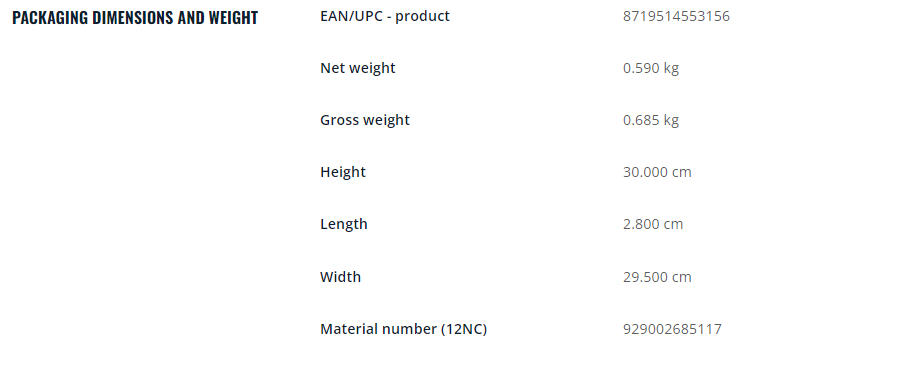 Material number (12NC) : 929002685117
