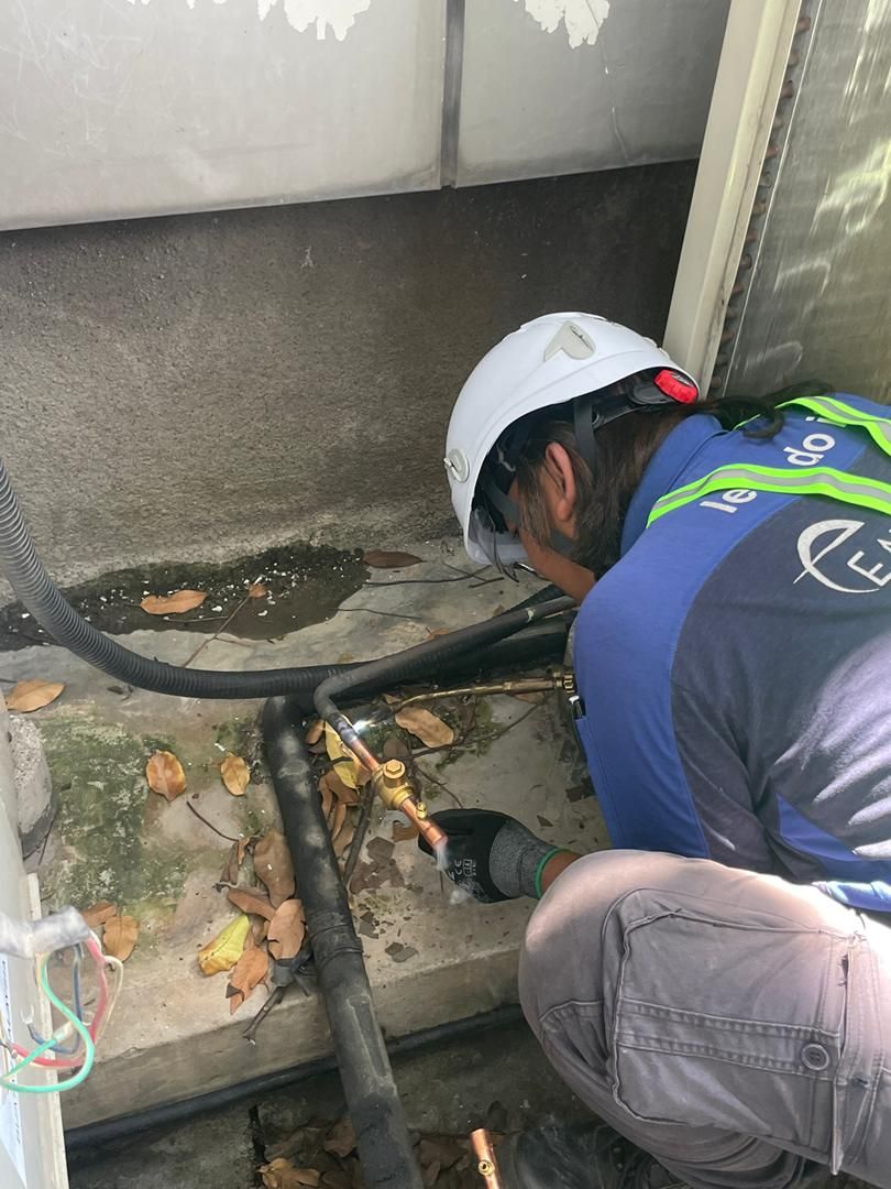 1. New Compressor Installation: We removed the defective unit and installed a high-reliability replacement. This required expert copper pipe brazing to ensure the joints could withstand the high-pressure and high-vibration environment of a commercial HVAC system.