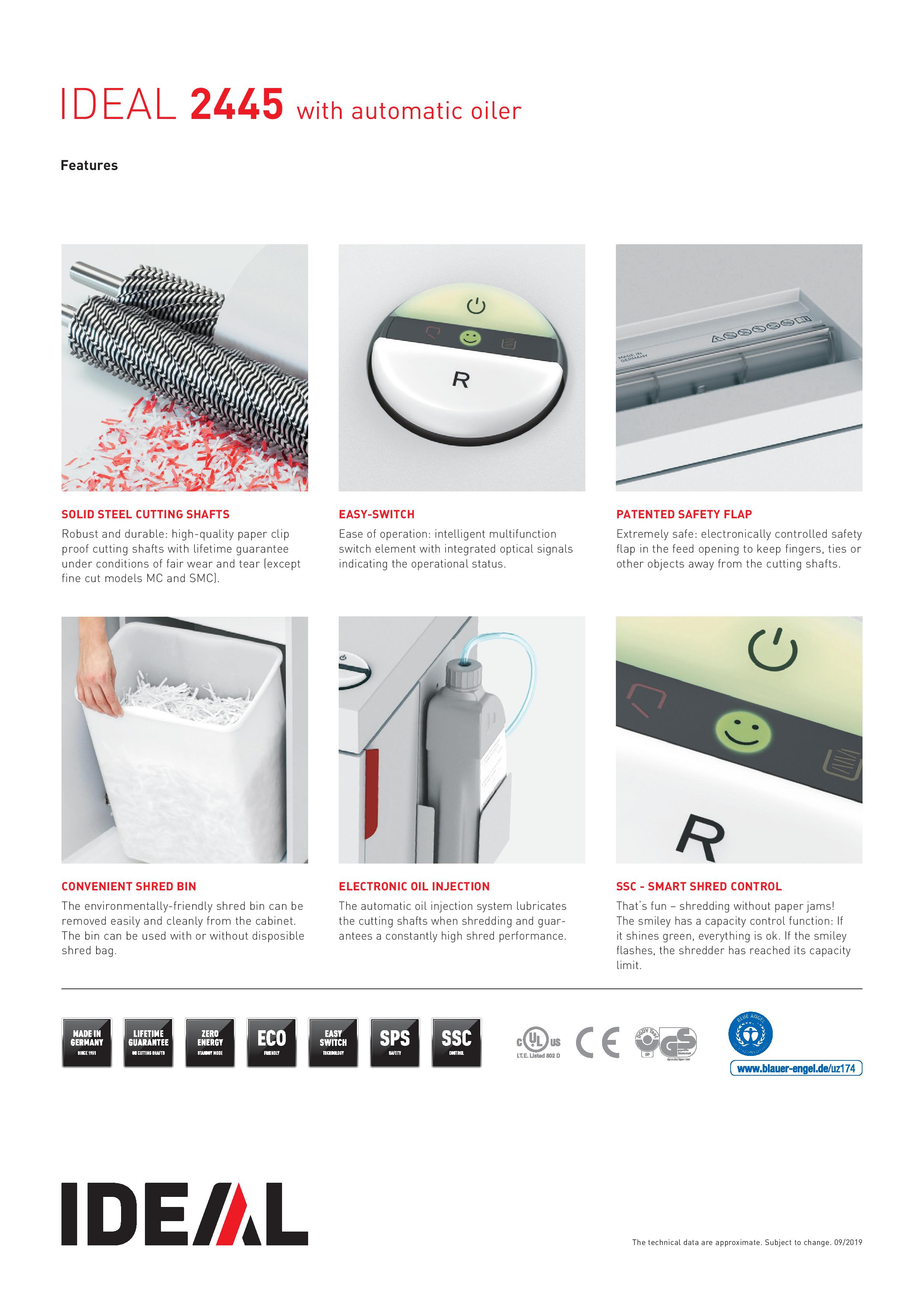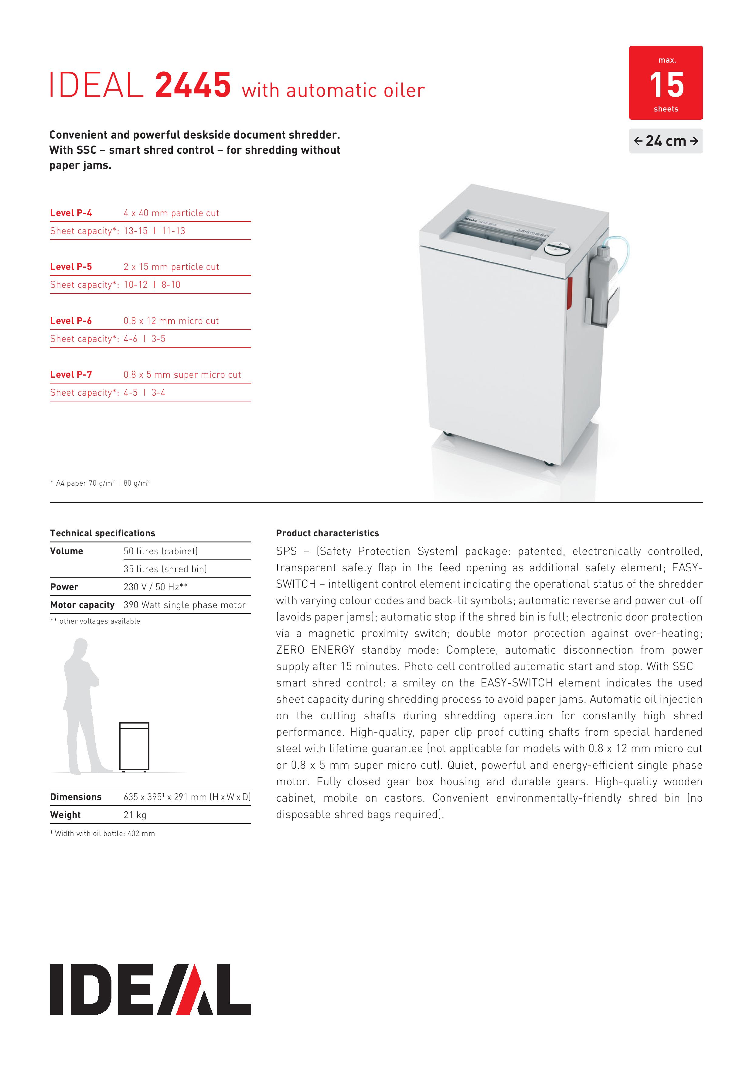 IDEAL 2445 Paper Shredder With Automatic Oiler Function