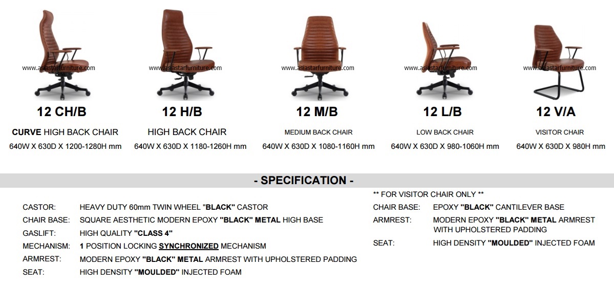 | CLASSICOR 12 KERUSI MEDIUM BACK KLASIKOR SAIZ | : | 640W X 630D X 1080-1160H mm |