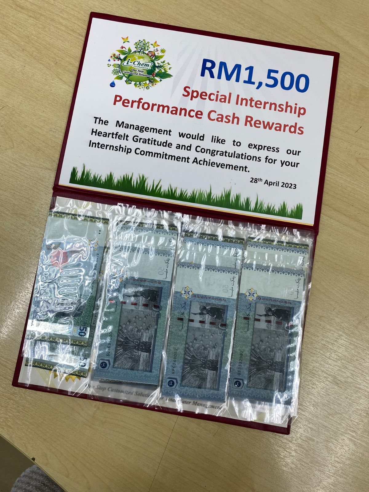 Internship Reward - I-CHEM SOLUTION SDN BHD