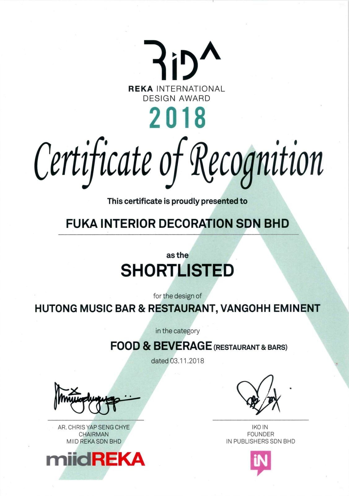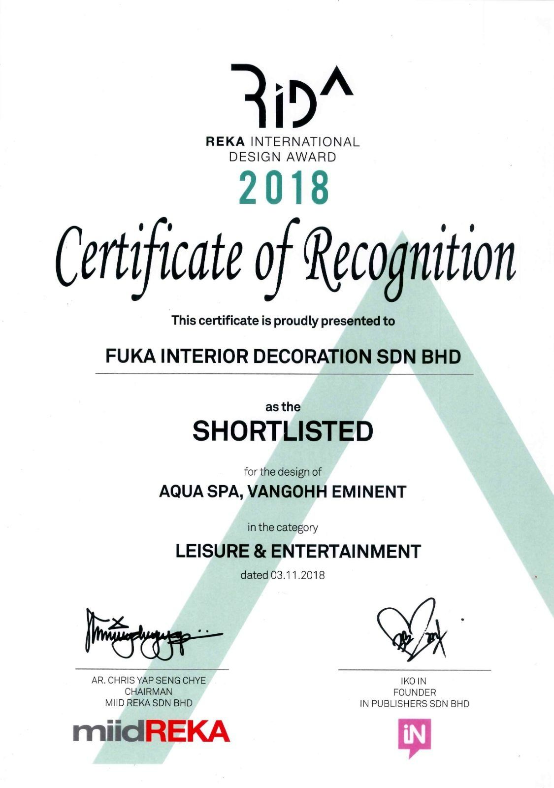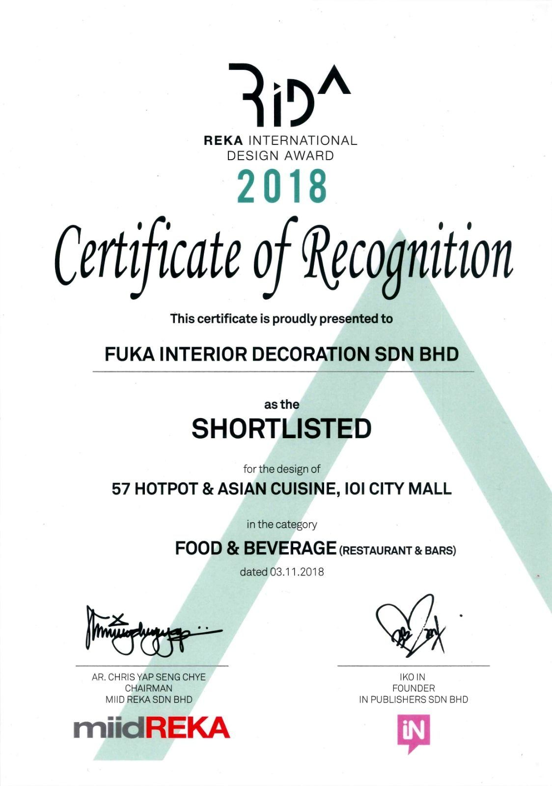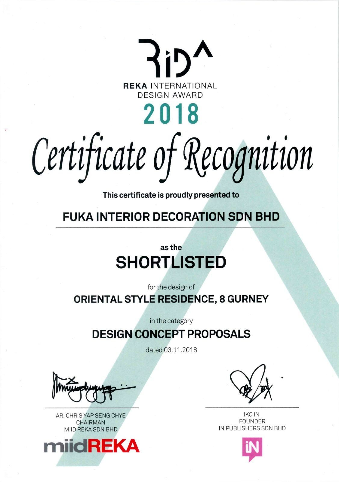 2018 RIDA Award - FUKA INTERIOR DECORATION SDN BHD