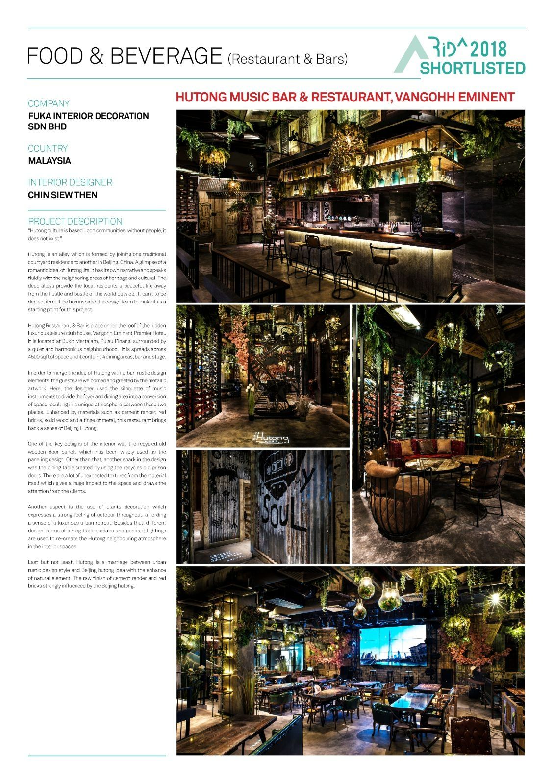 | *HUTONG MUSIC BAR & RESTAURANT — Restaurant Edition (Shortlisted) |