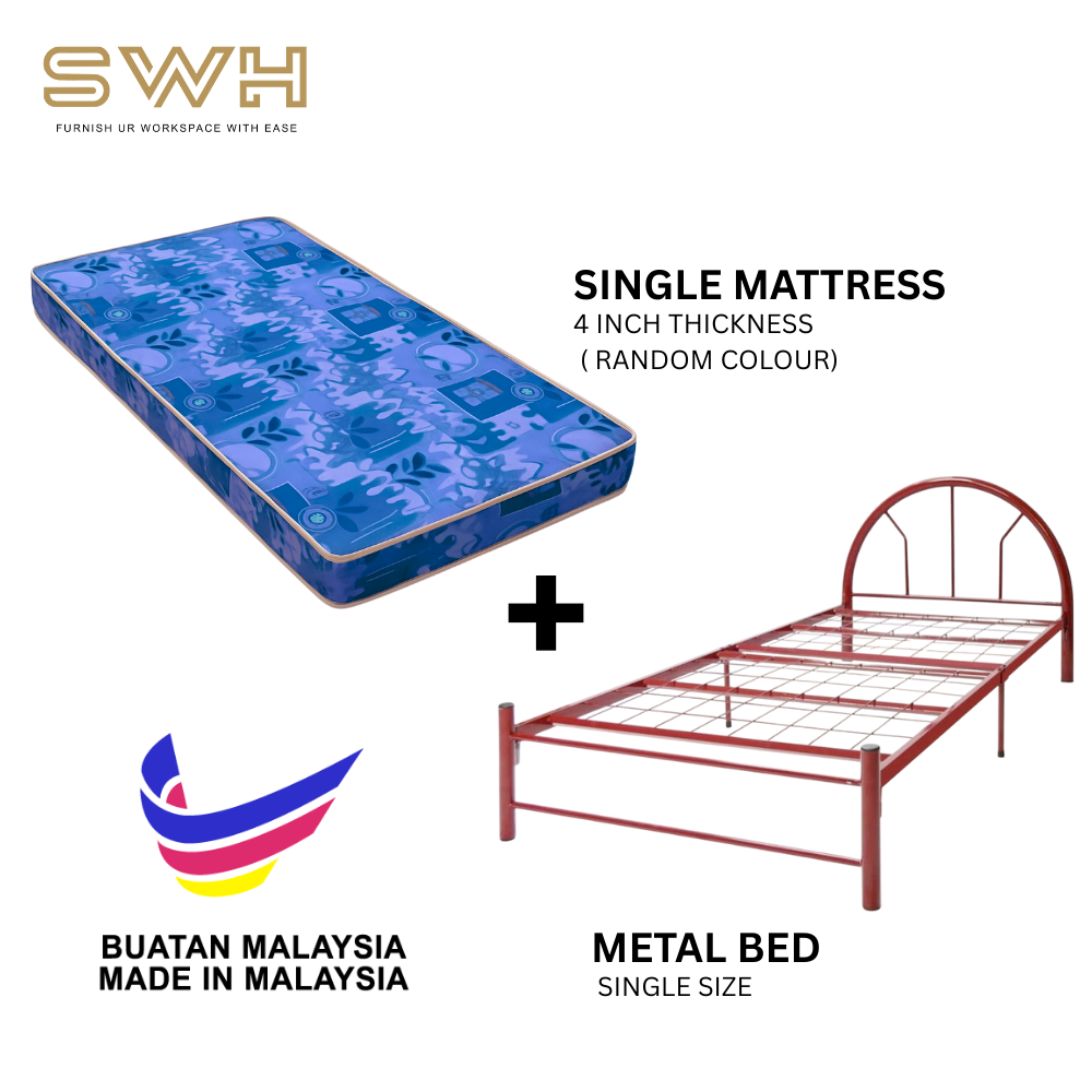 COMBO SET Single Metal Bed Frame + Single Size Mattress ( SWH ) | JTK Standard Bed and Mattress