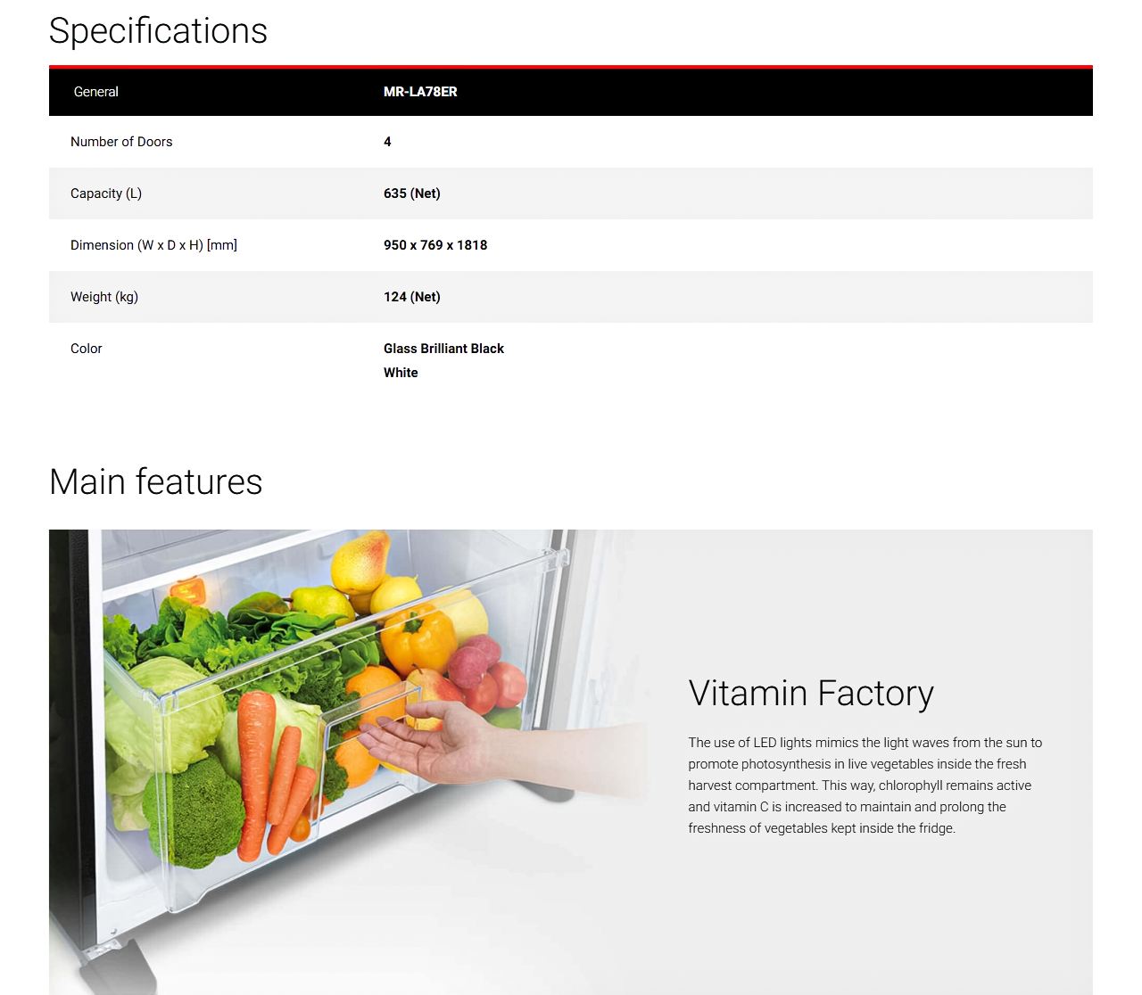 • Capacity (L) : 635 (Net)