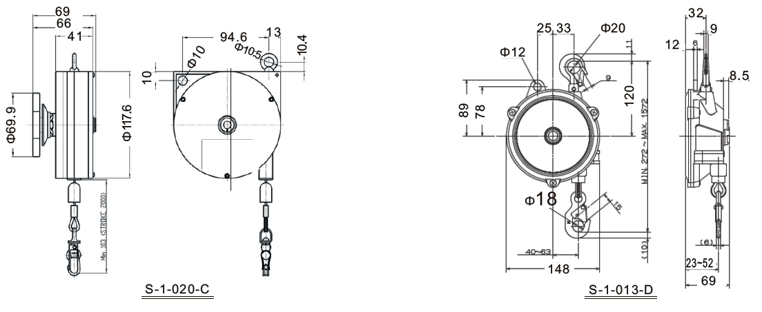 Pull Force Variation (Extension Length) 0~50N (1.5m) 0~35N (1.5m) 20~20N (1.3m)