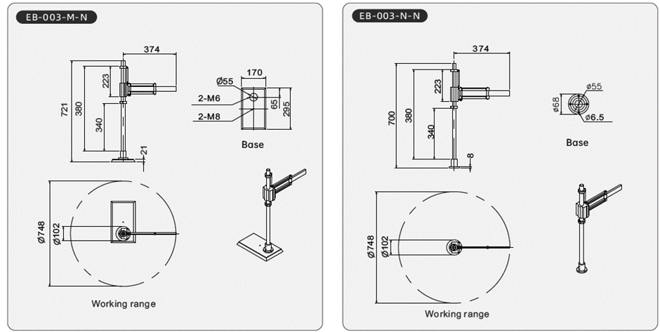• Easy and flexible operation. Able to work at any point of 360° in the working range.