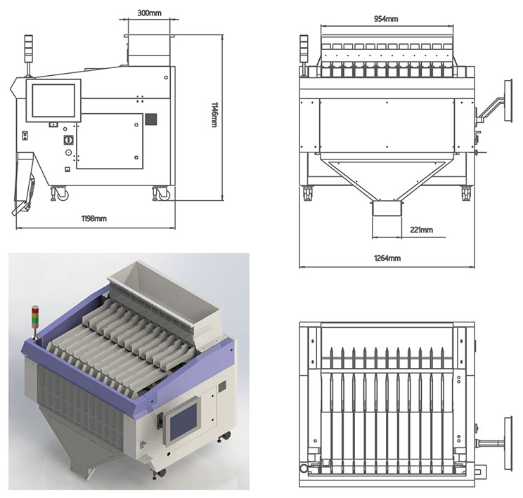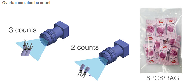 • High efficiency:Vision based counter uses large track and scan falling objects,instead of using several narrow tracks to separate objects one by one