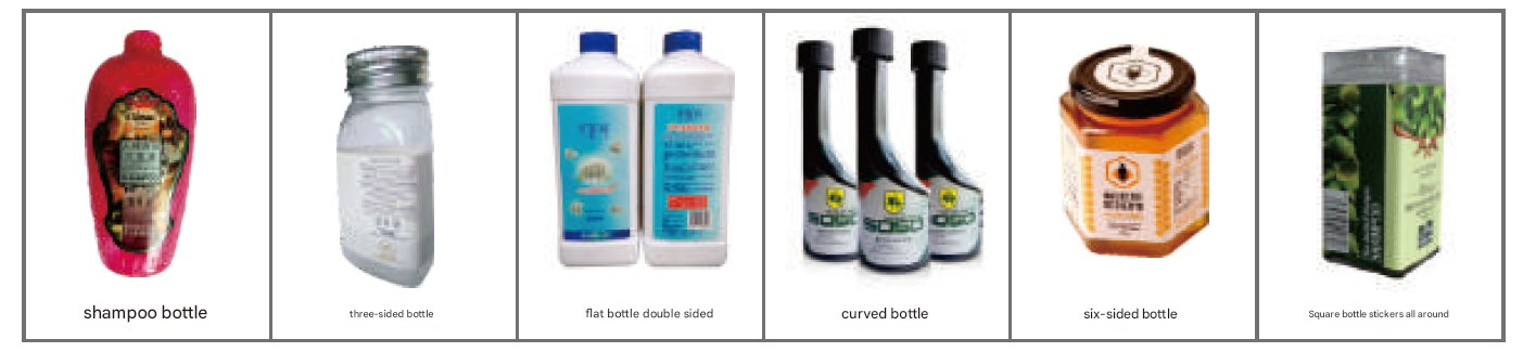 • Flat bottles, cans, square, hexagonal, octagonal, and curved bottles