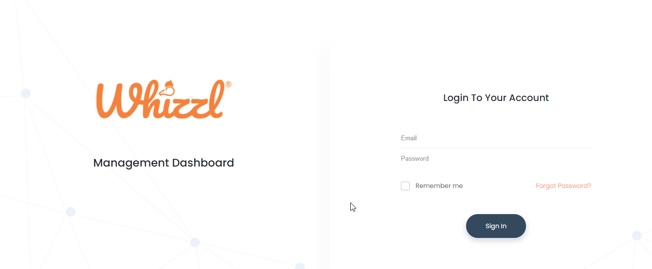 Dashboard Management URL: business.whizzl.comYou are required to log in with the registered “Whizzl Email” and “Password”.