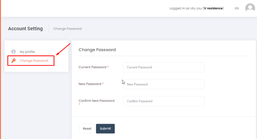 To change your password, you may go to “My Profile” > “Change Password”. Then, you are required to insert the “Current Password”, enter your “New Password” and “Confirm New Password”, click on “Submit” to complete the changed password.