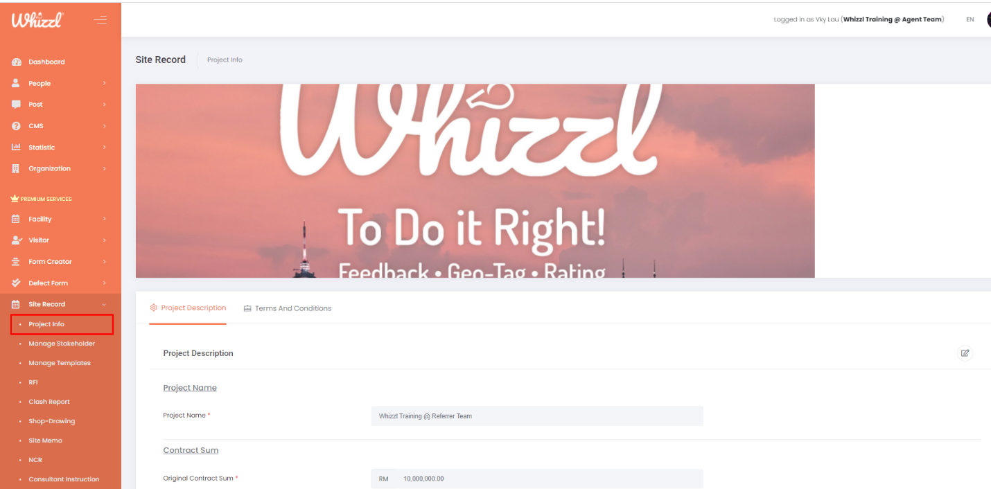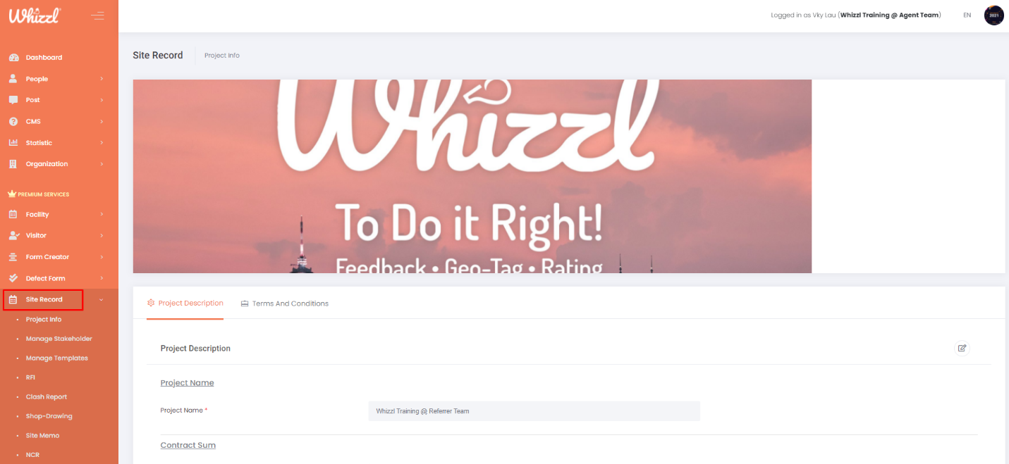 Go to “Site Record”, Select “Project Info” to proceed the setup for your Project.