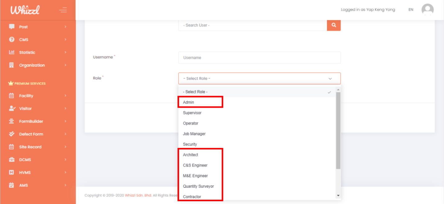 Step 2: Enter Whizzl “Username/Email”, select “Role”. Click “Submit” to add new admin. Step 3: An email invitation to add as new admin will be sent to the staff.
