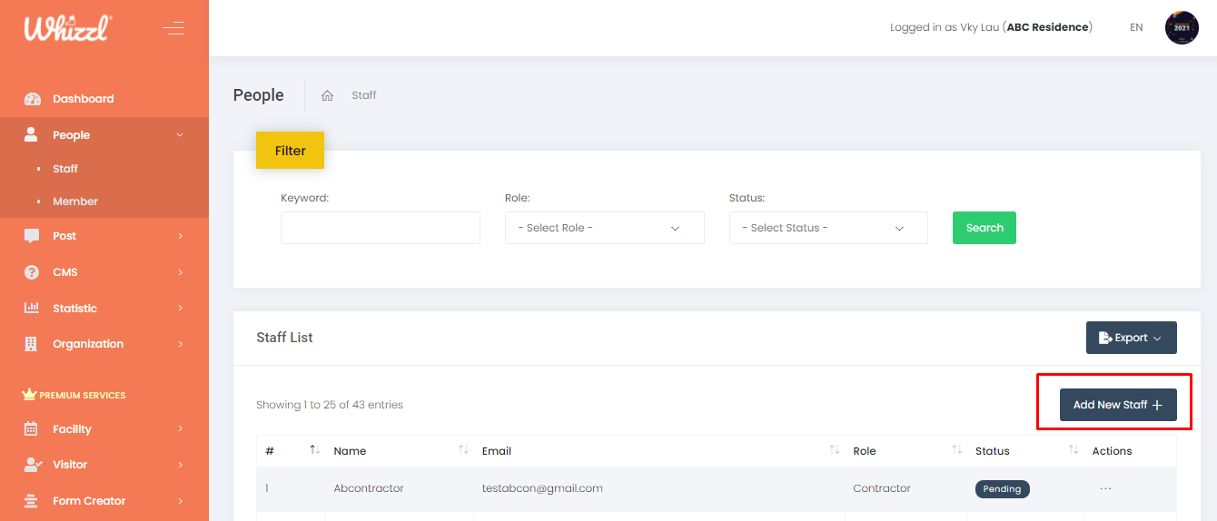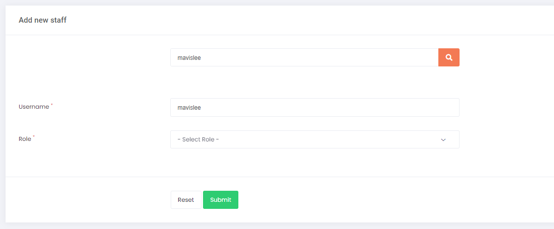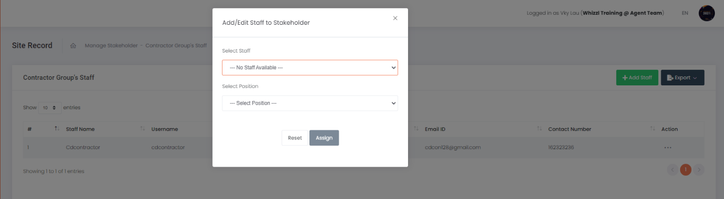 Step 4: Select a “Staff”. (You able to view full list of all staff who have been assigned role.)