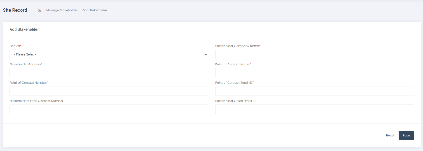 Step 1: Select “Manage Stakeholder” under “Site Record”.