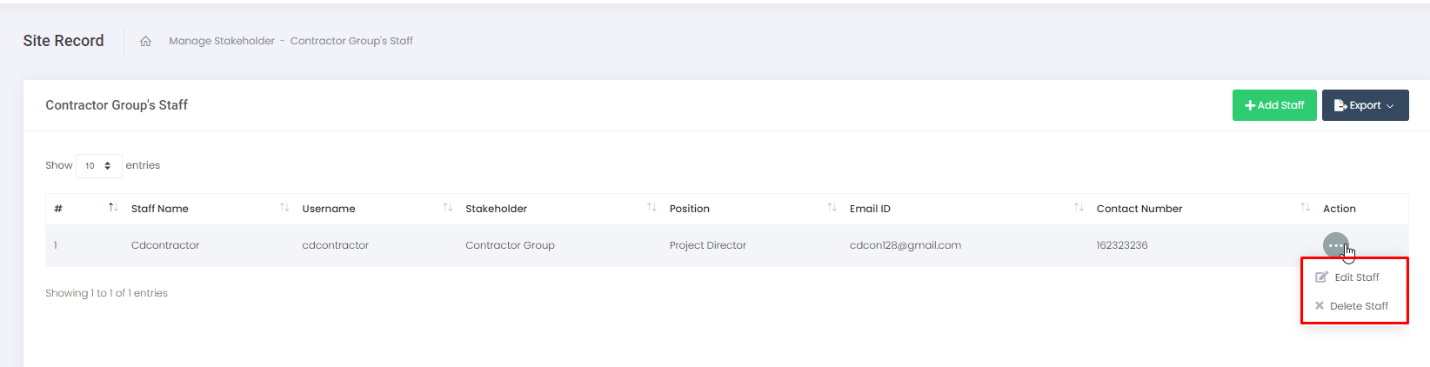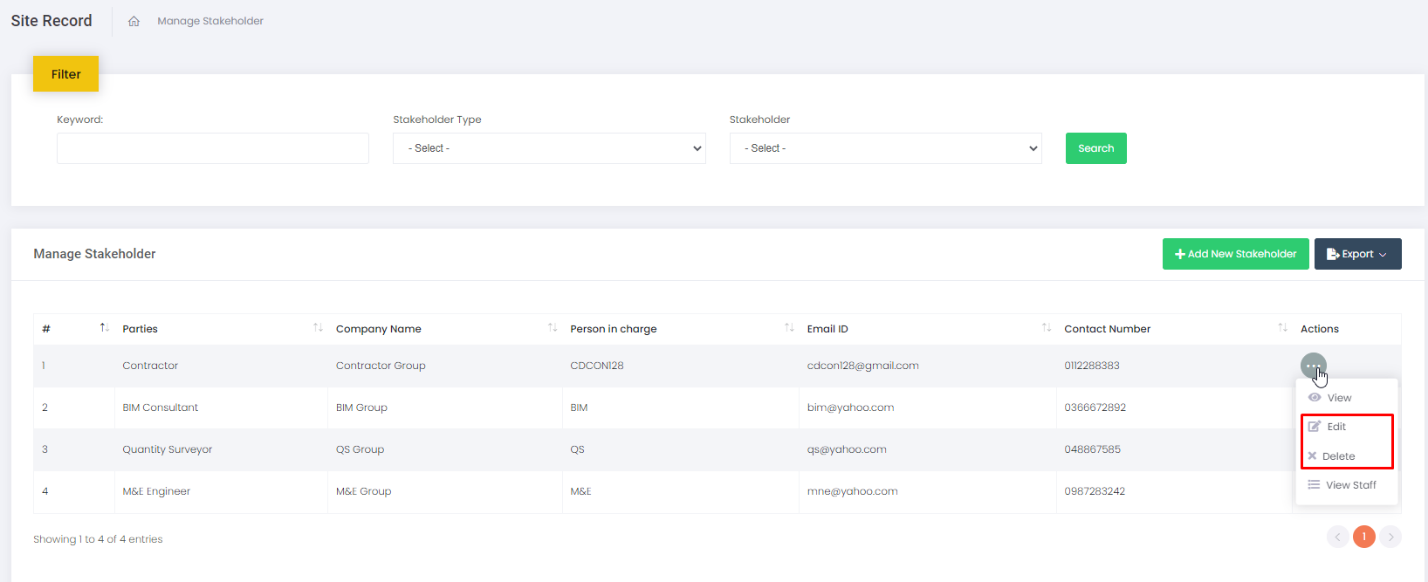 You can always edit/delete the staff’s information under each Stakeholder’s profile.