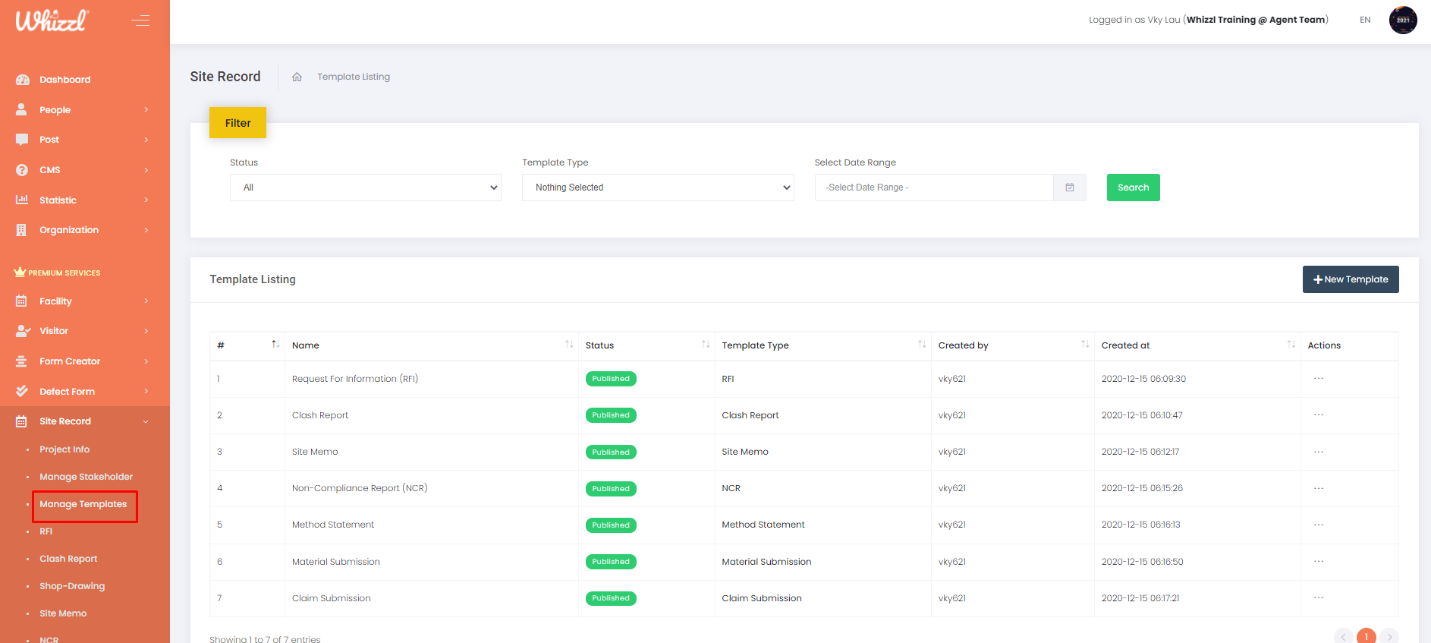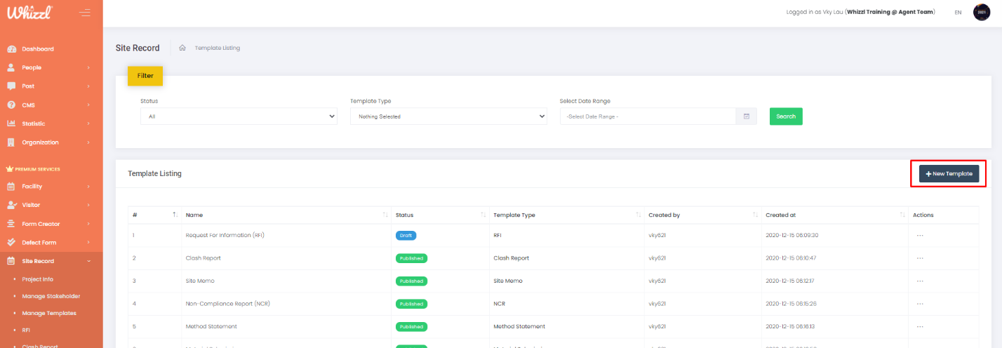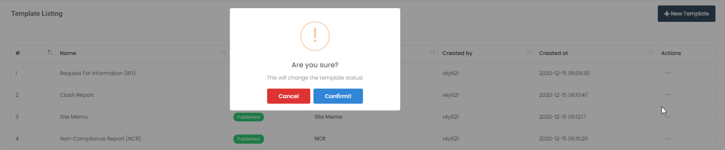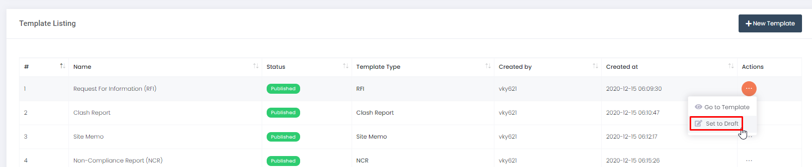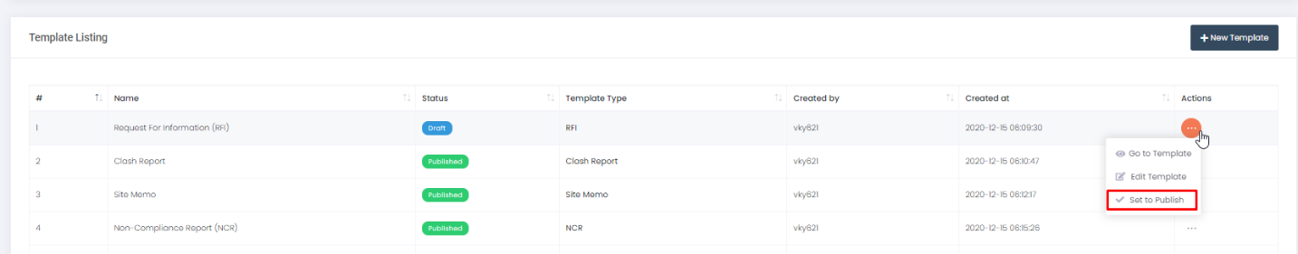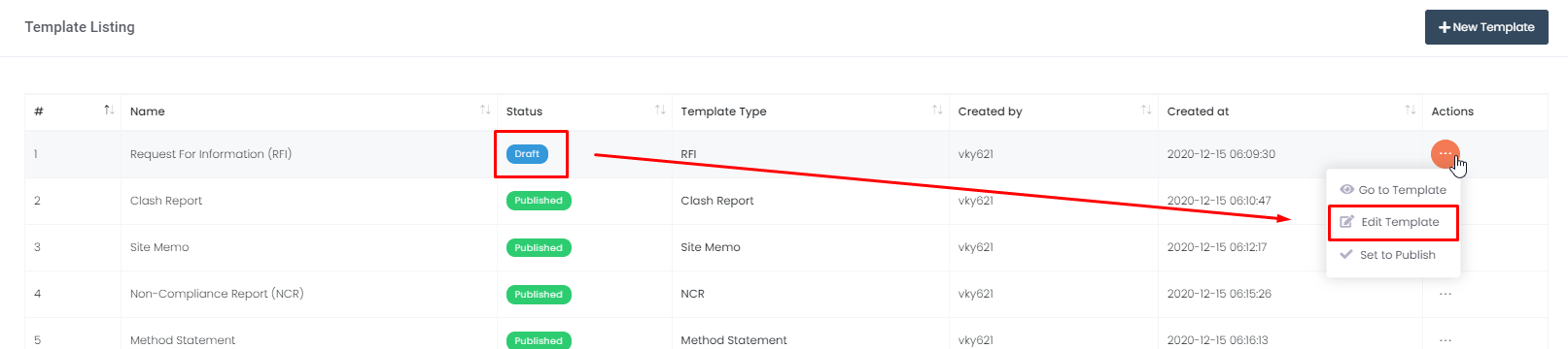 Step 3: You can change the “Template Status” based on the needs into “Draft”, “Published” & “Unpublished”.
