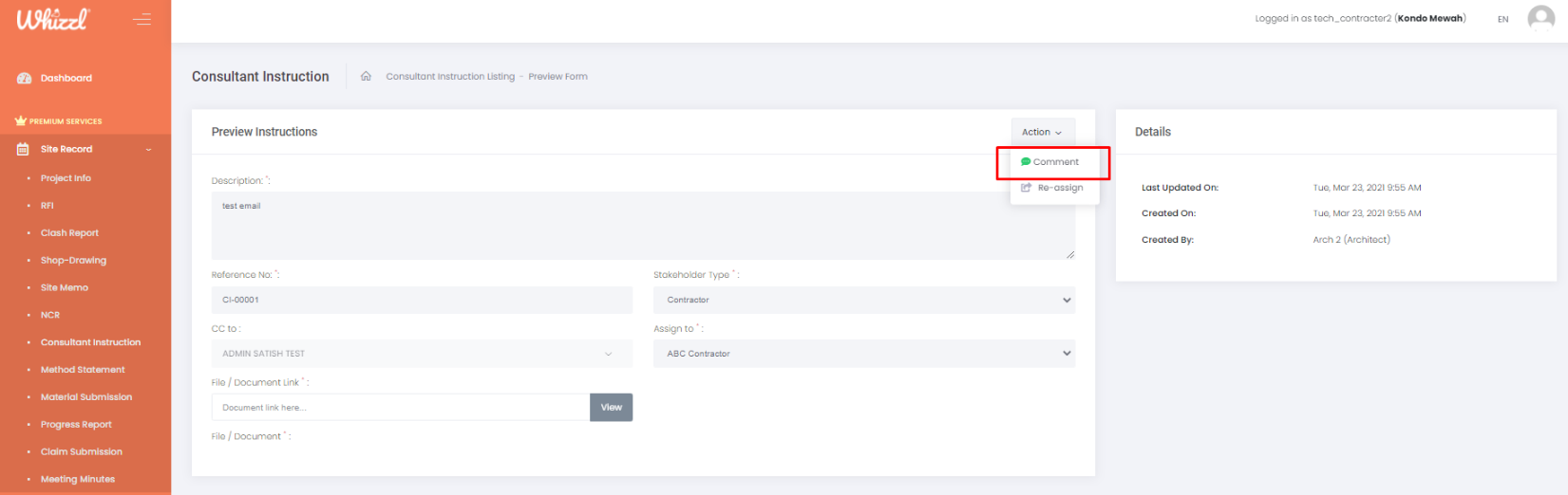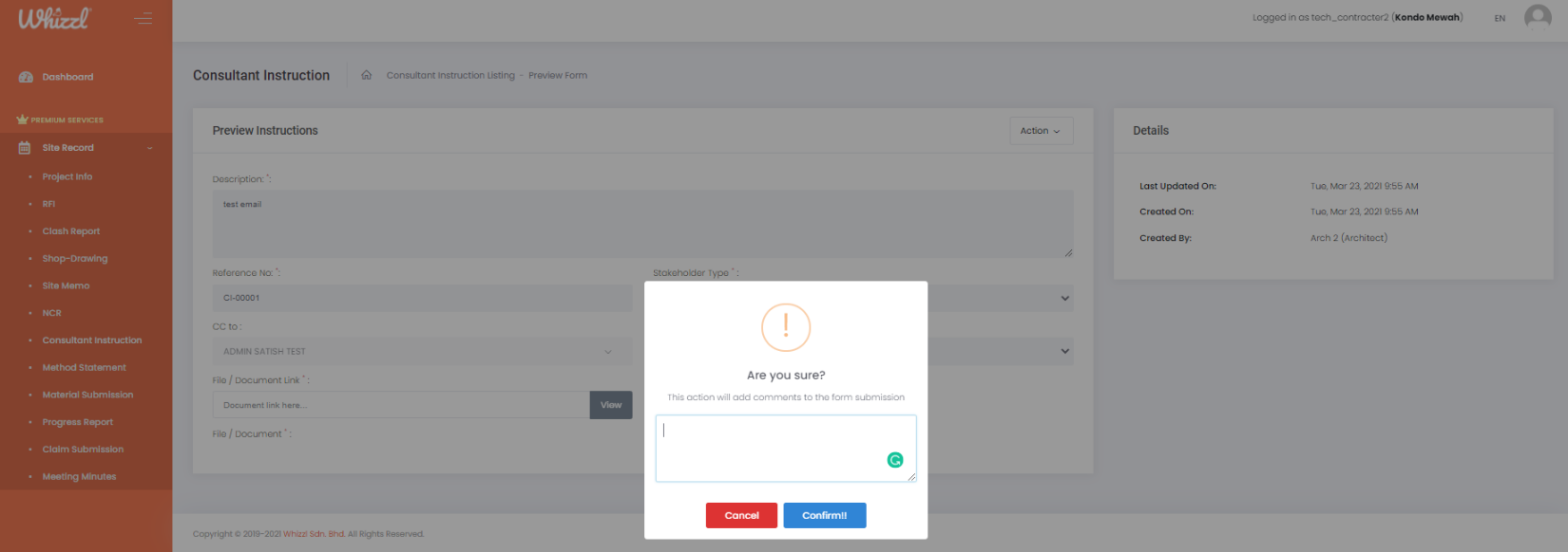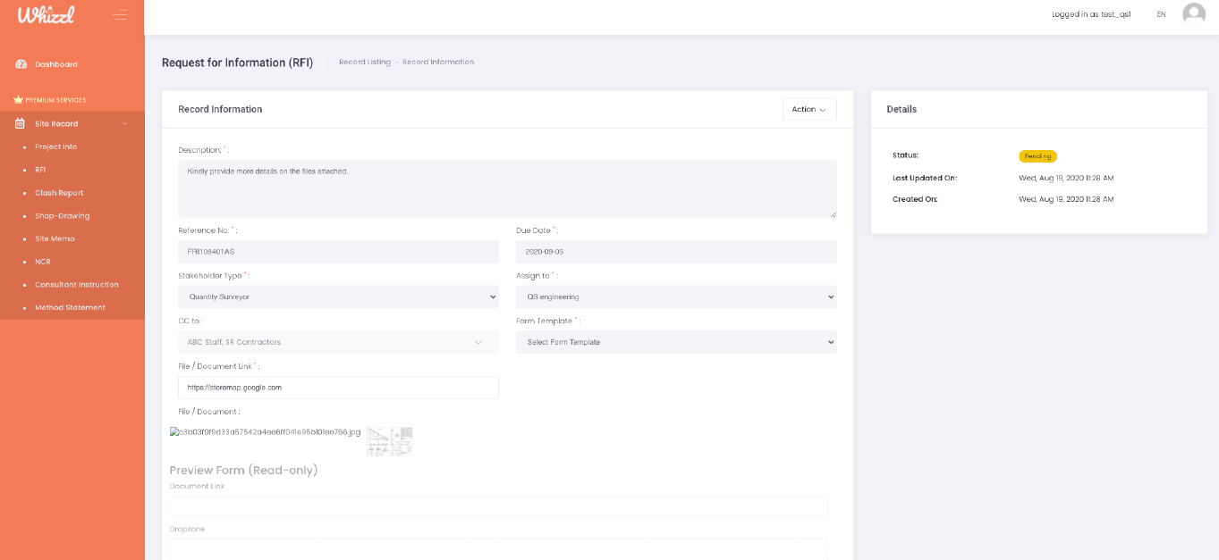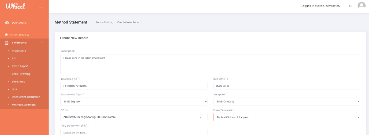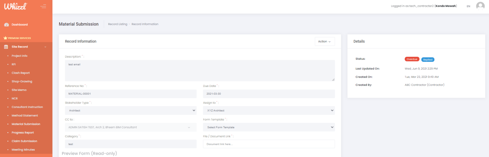 You can customize all the template forms for Request for Information (RFI), Clash Report, Shop-Drawing Submission, Site Memo, Non-Compliance Report (NCR), Method Statement, Material Submission and Claim Submission.