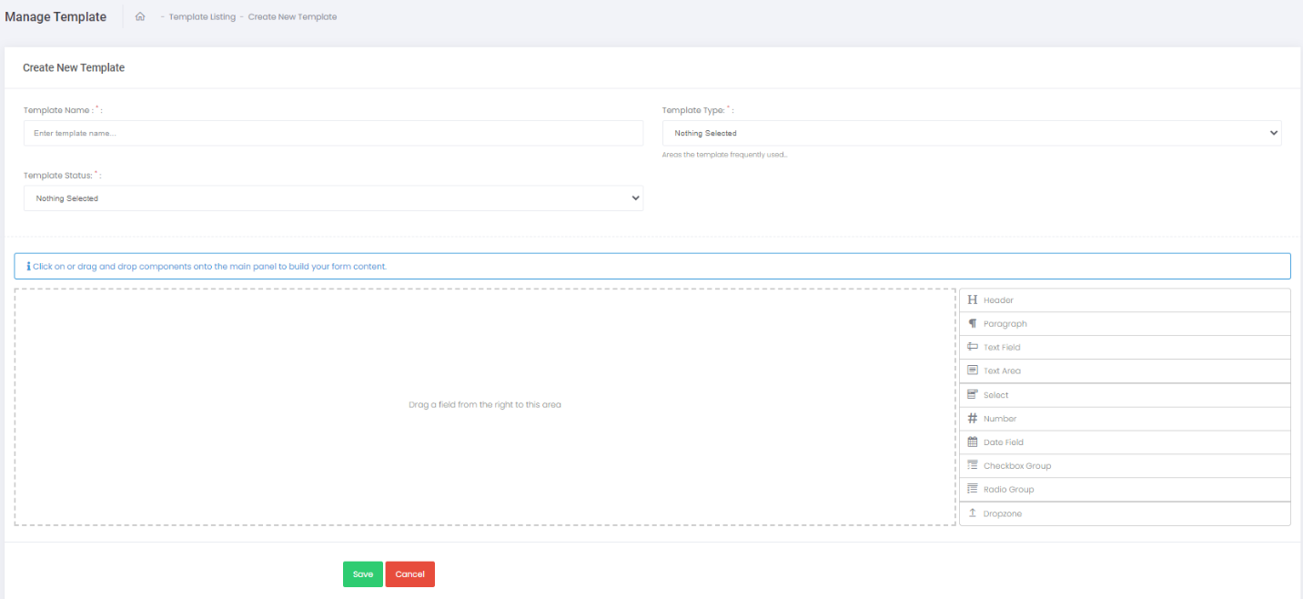 Step 2: Enter a “Template Name” and select “Template Type”.