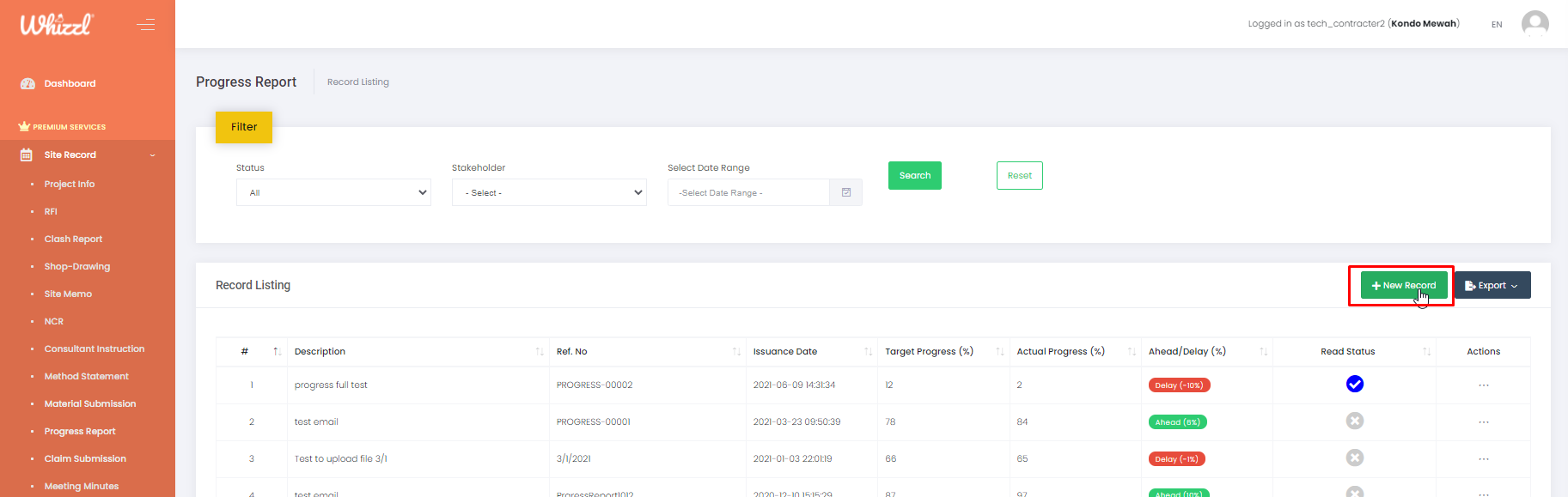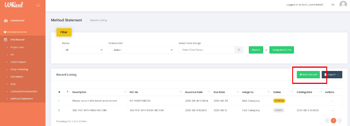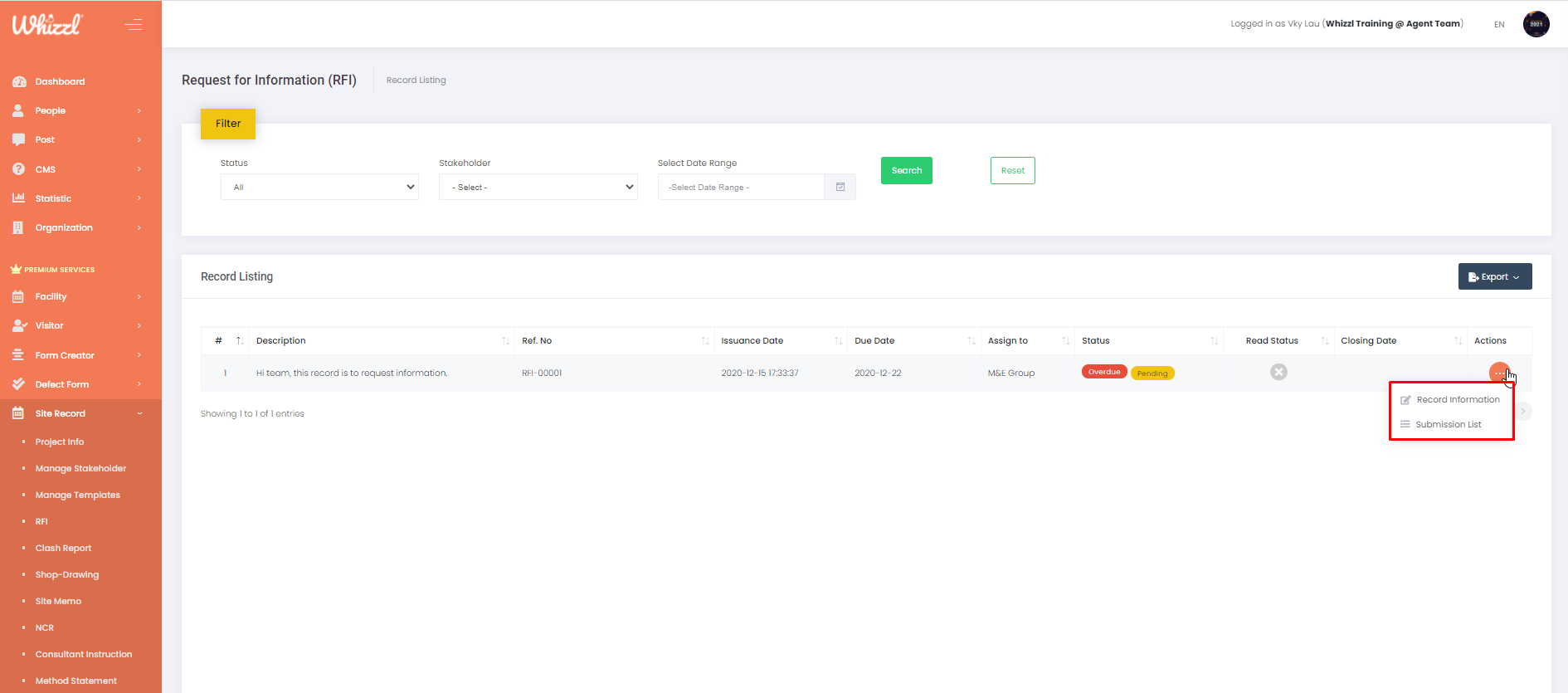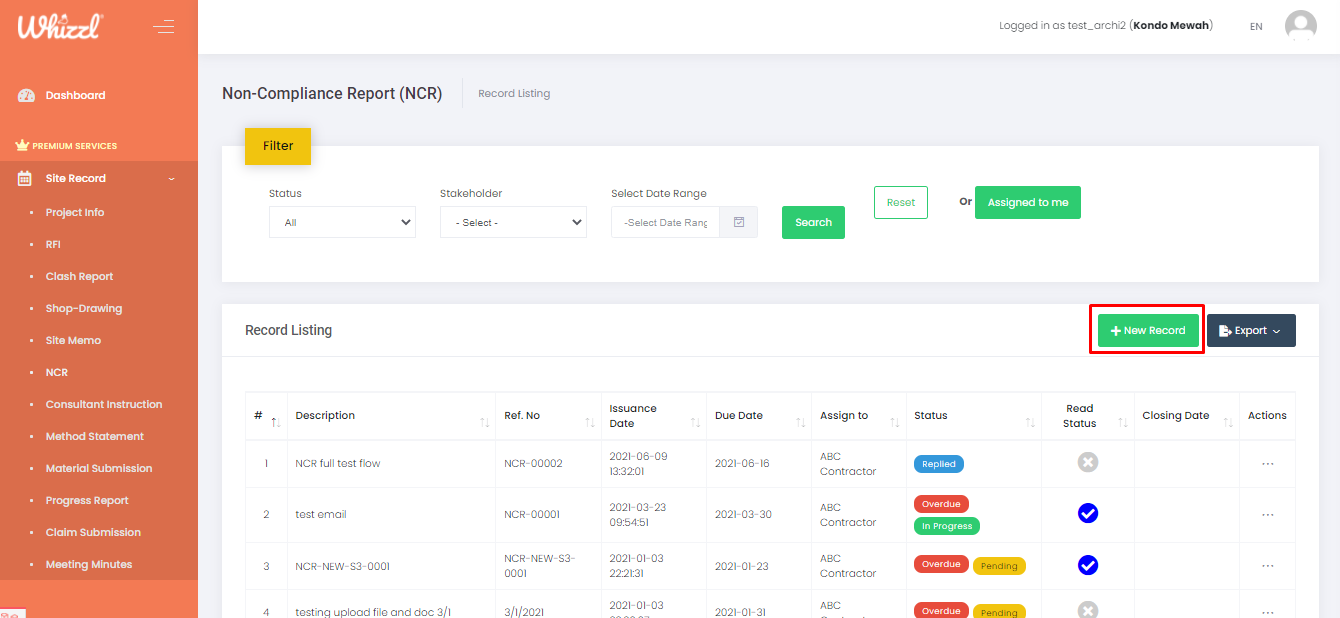 Step 1: Click on “+ New Record”.Step 2: You can create new record by selecting suitable template, stating your request, assigned to specific Stakeholder, cc to relevant Stakeholder(s), include file/document etc.