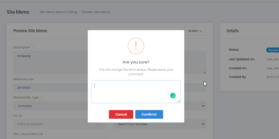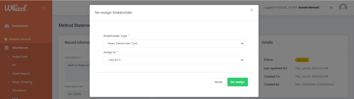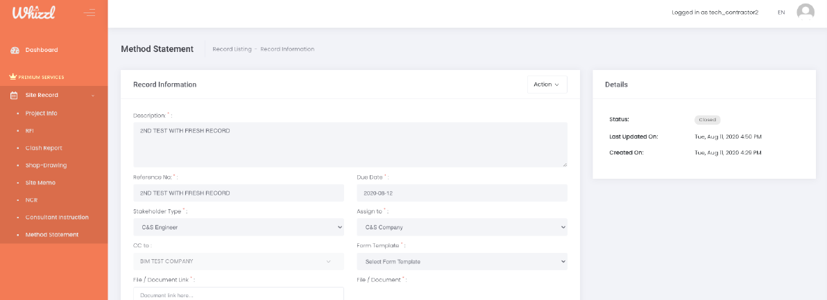 Method Statement is a description of how the work will be carried out accurately and safely. These documents are usually used to provide information to workers about how the work should be executed with safety precautions. There is a status indicator in this sub-module that allows the Contractor to check the status.