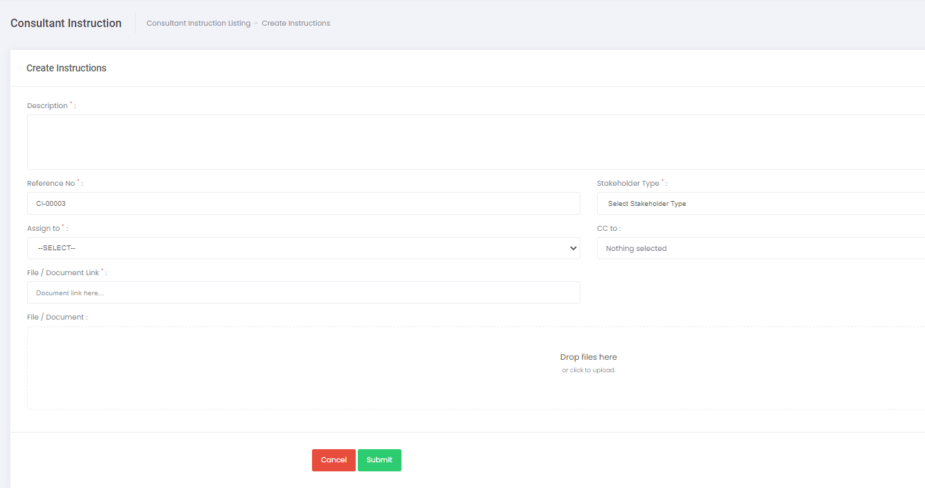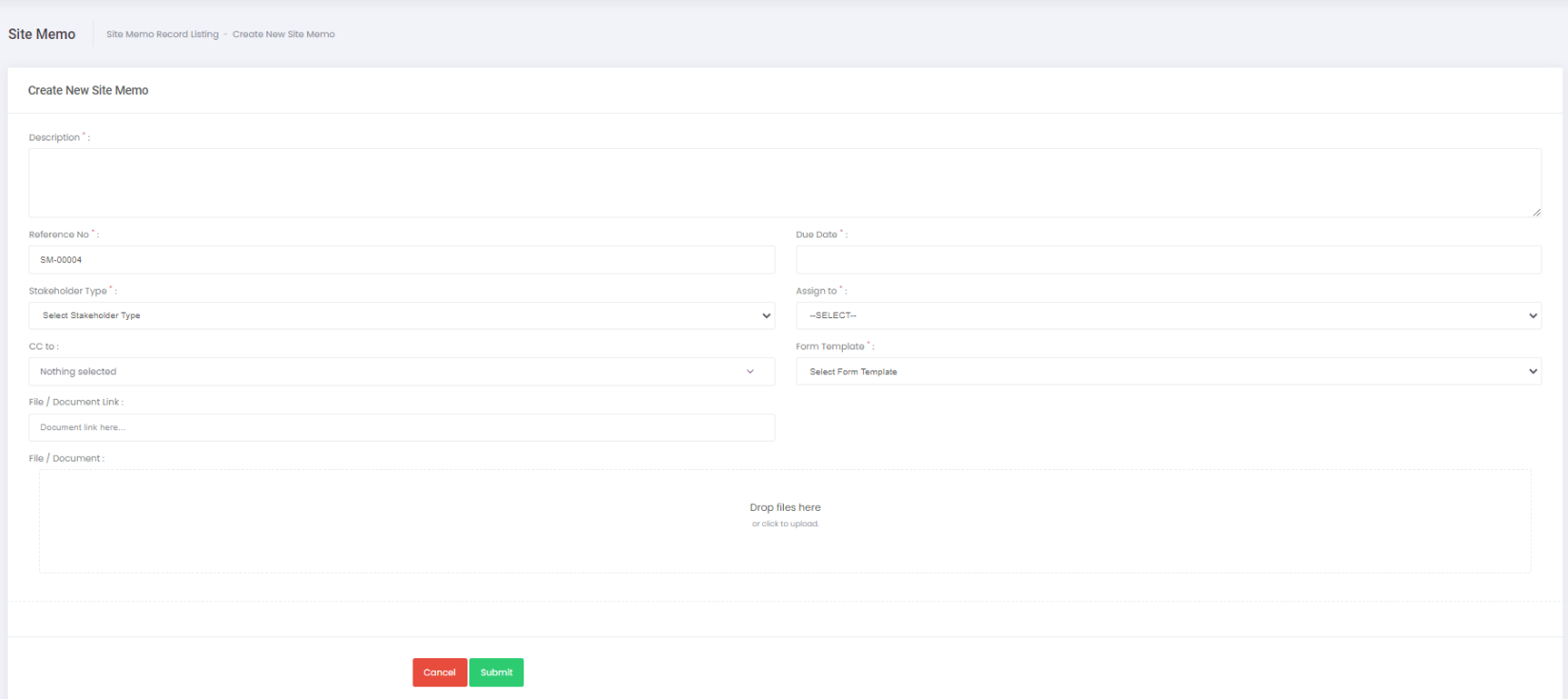 Step 2: You can create new record by stating your request, assigning to a specific Stakeholder and cc to relevant Stakeholder(s), attaching file/document and others.
