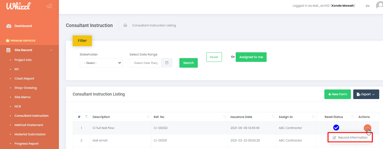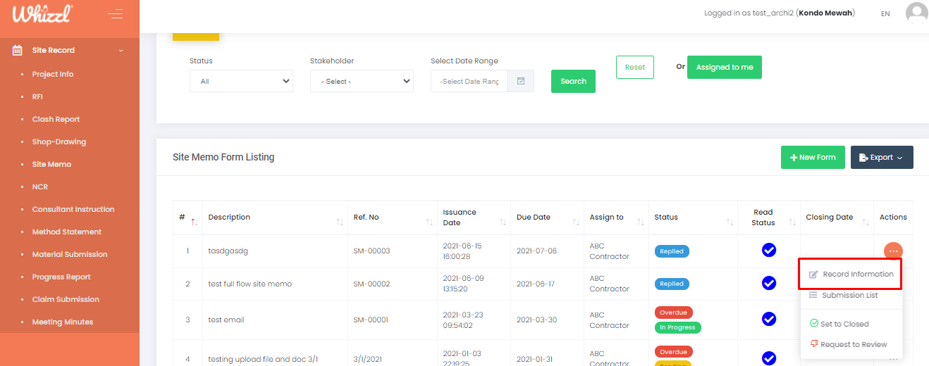 Site Record is designated to simplify the workflow in construction site on tracking the items/issues required during development progress.