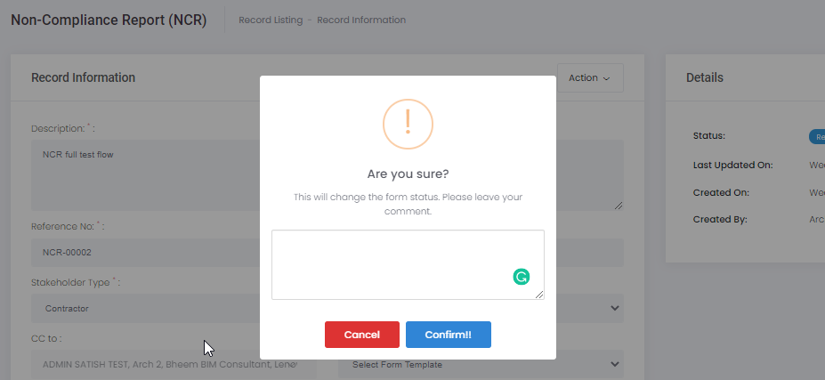 Closed - The record is reviewed and closed by BIM Consultant/BIM Coordinator.