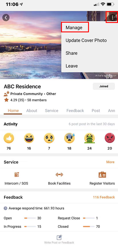 To go to the Management Dashboard, click on the 3 dots button and select “Manage”.