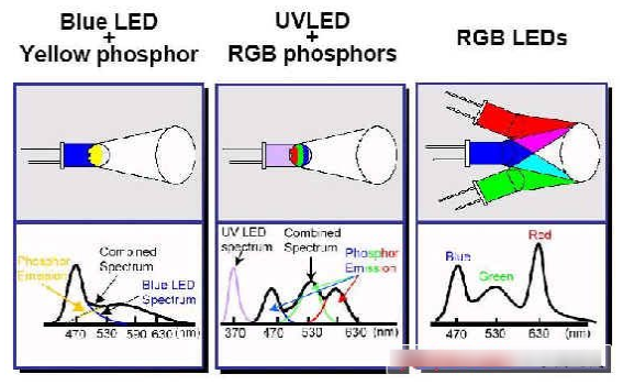 Figure 1: White LEDs use different color-producing principles, which in turn affects overall performance.