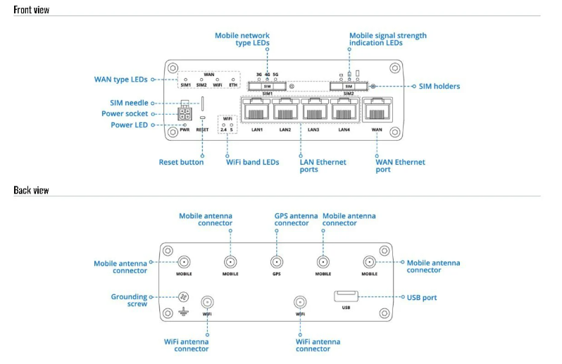 - Operating System: RutOS (OpenWrt based Linux OS)