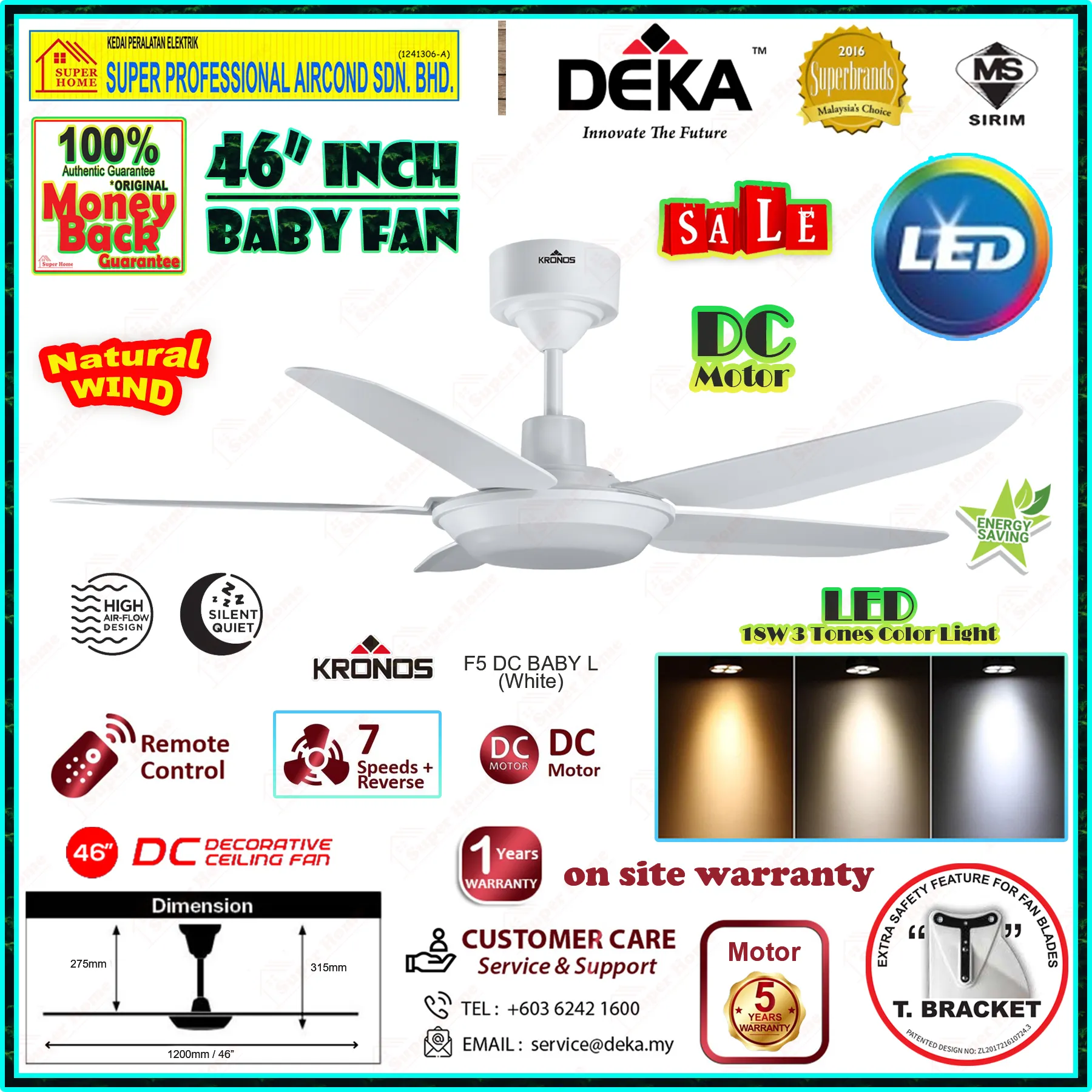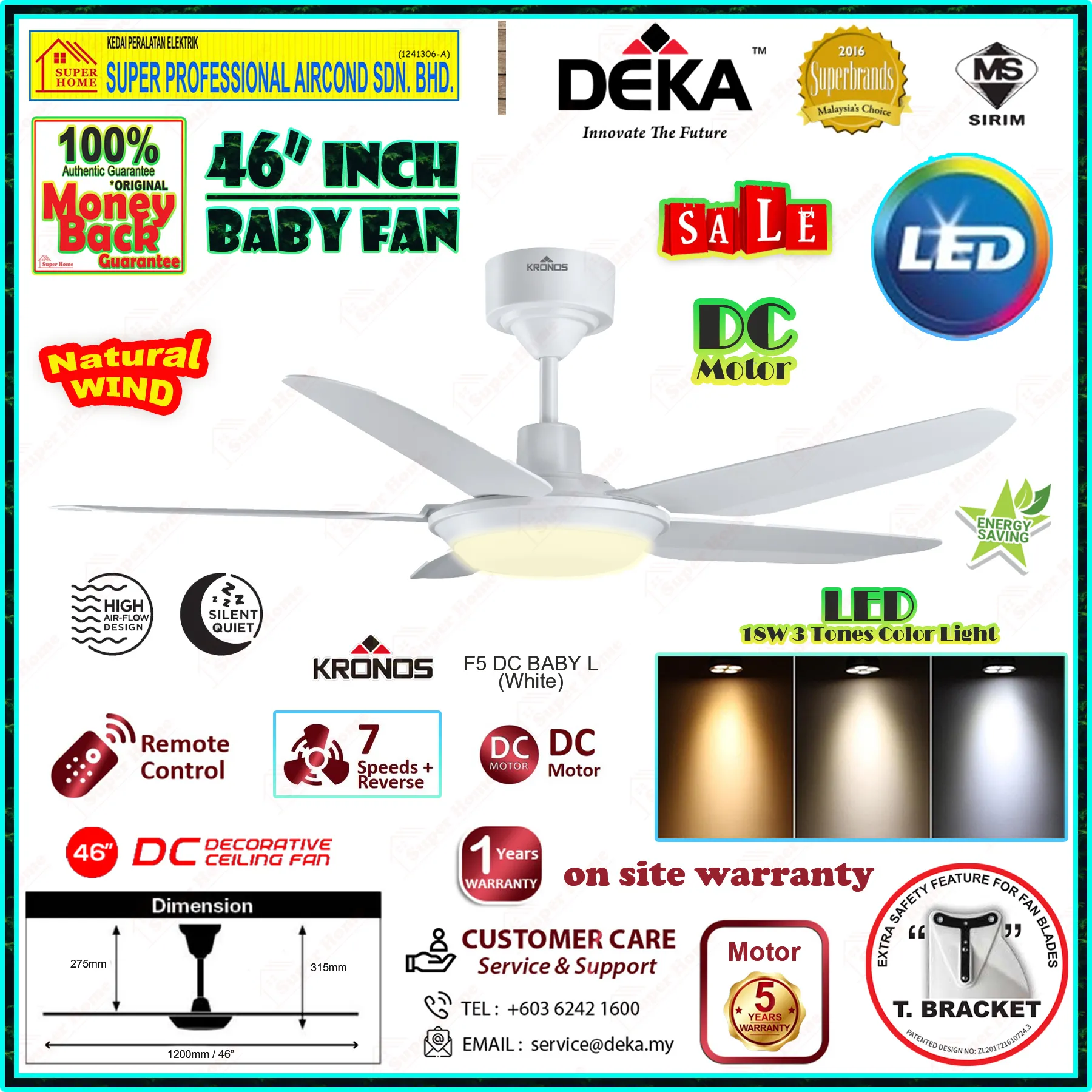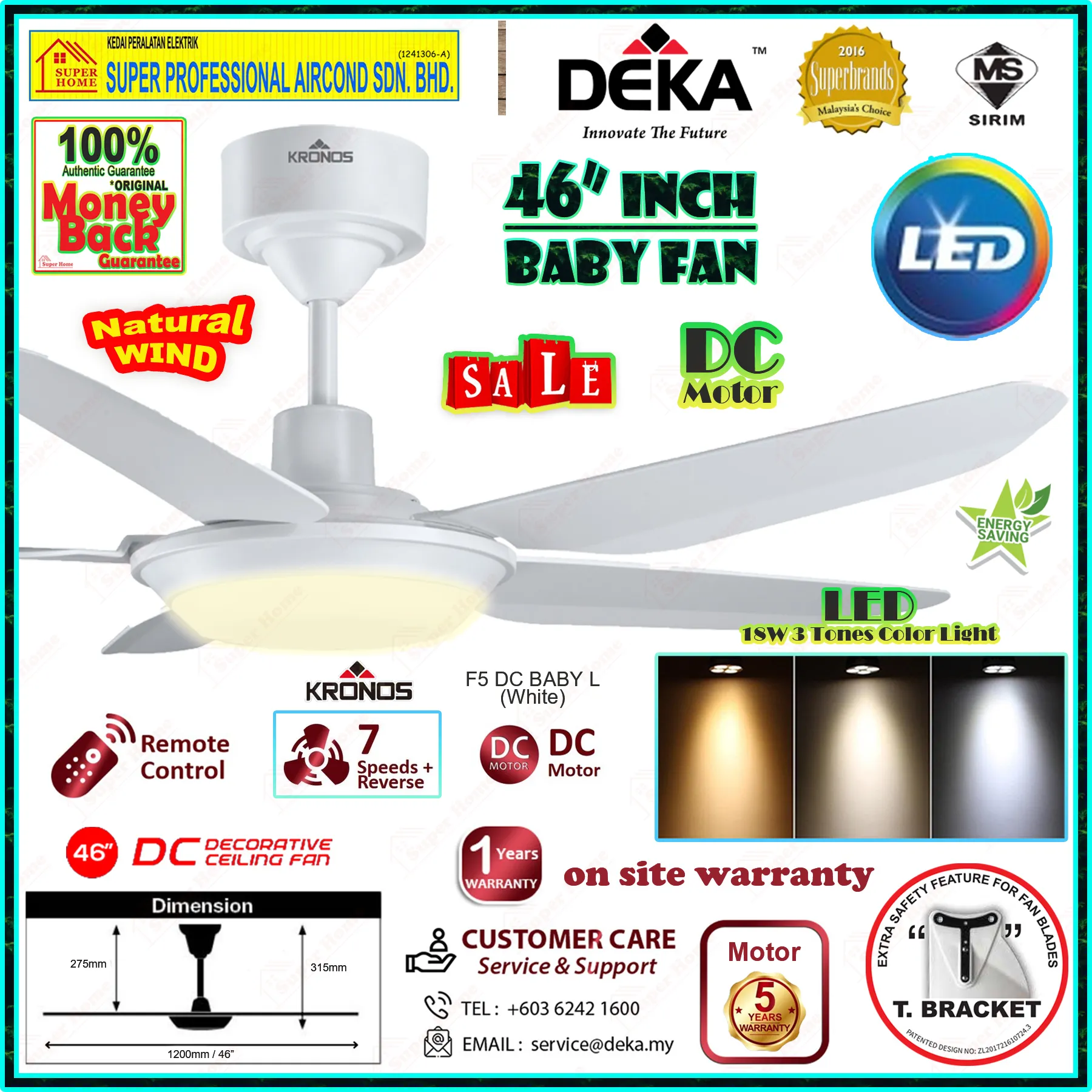 Selangor,Kuala Lumpur (KL),Petaling Jaya - Deka Baby Fan With LED Light Kronos F5DC BABY L White ((46 inches)) 14 Speed Remote Control 5 Blades Ceiling Fan ((DC Motor))