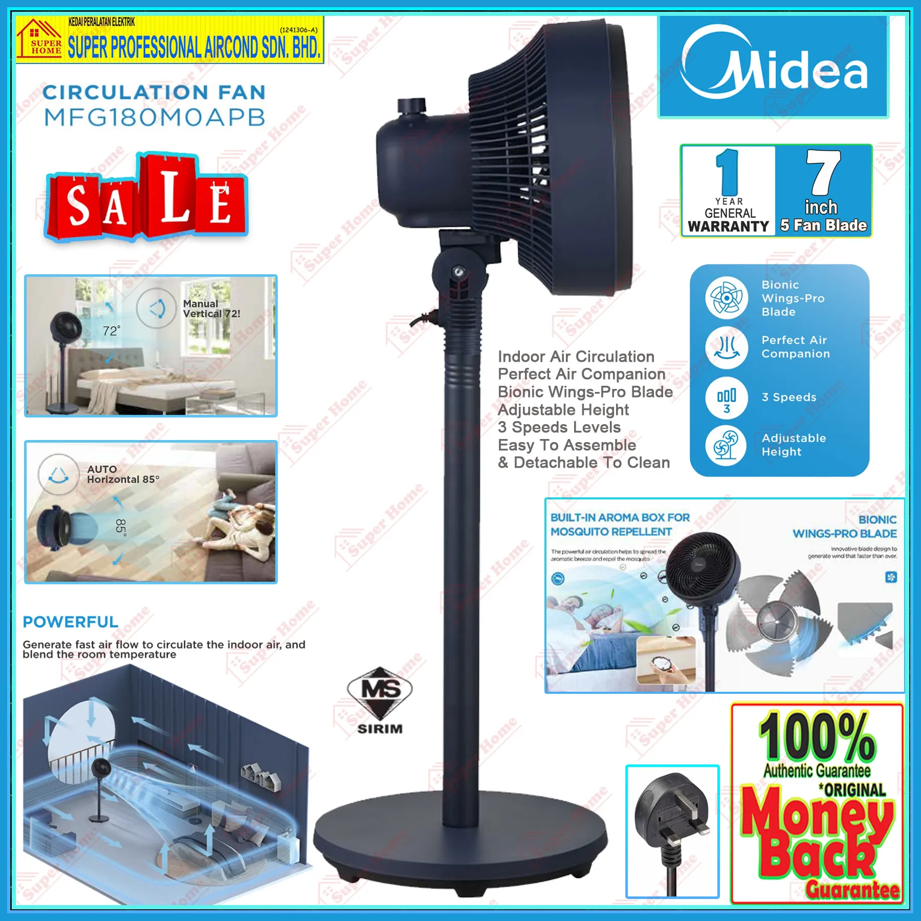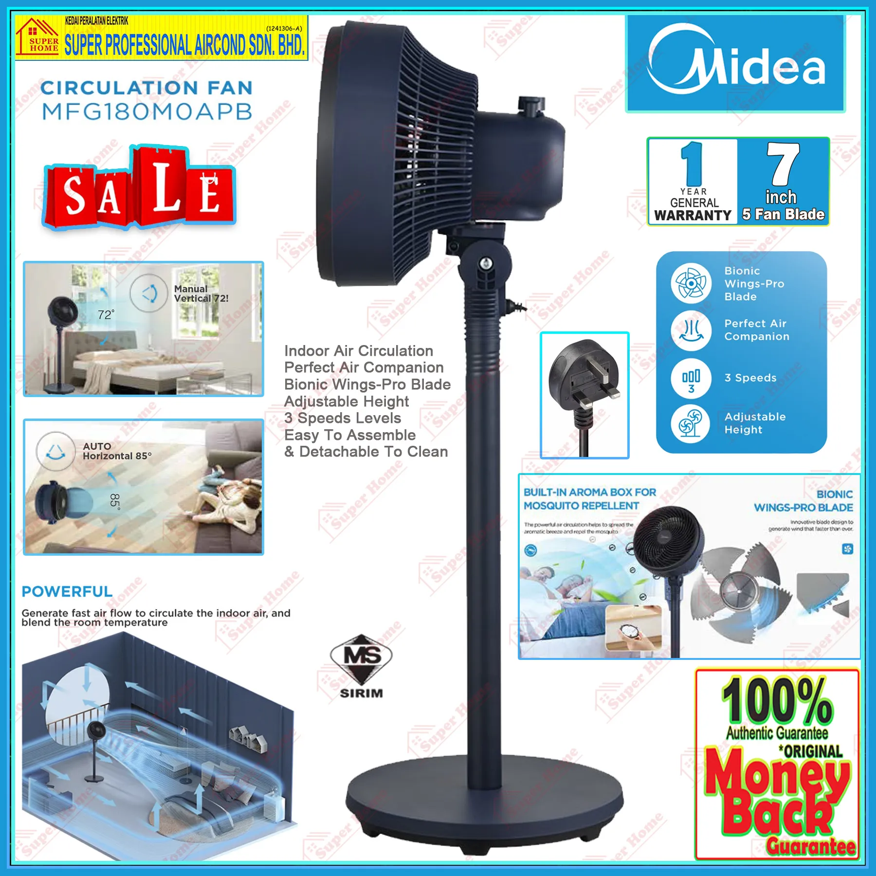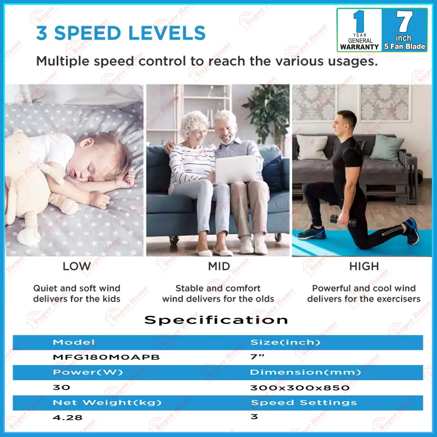 Selangor,Kuala Lumpur (KL),Petaling Jaya - Midea Circulation Stand Fan MFG180M0APB 5 Blades 7 Inch Circulation Fan With 3 Speed Levels / Table Fan