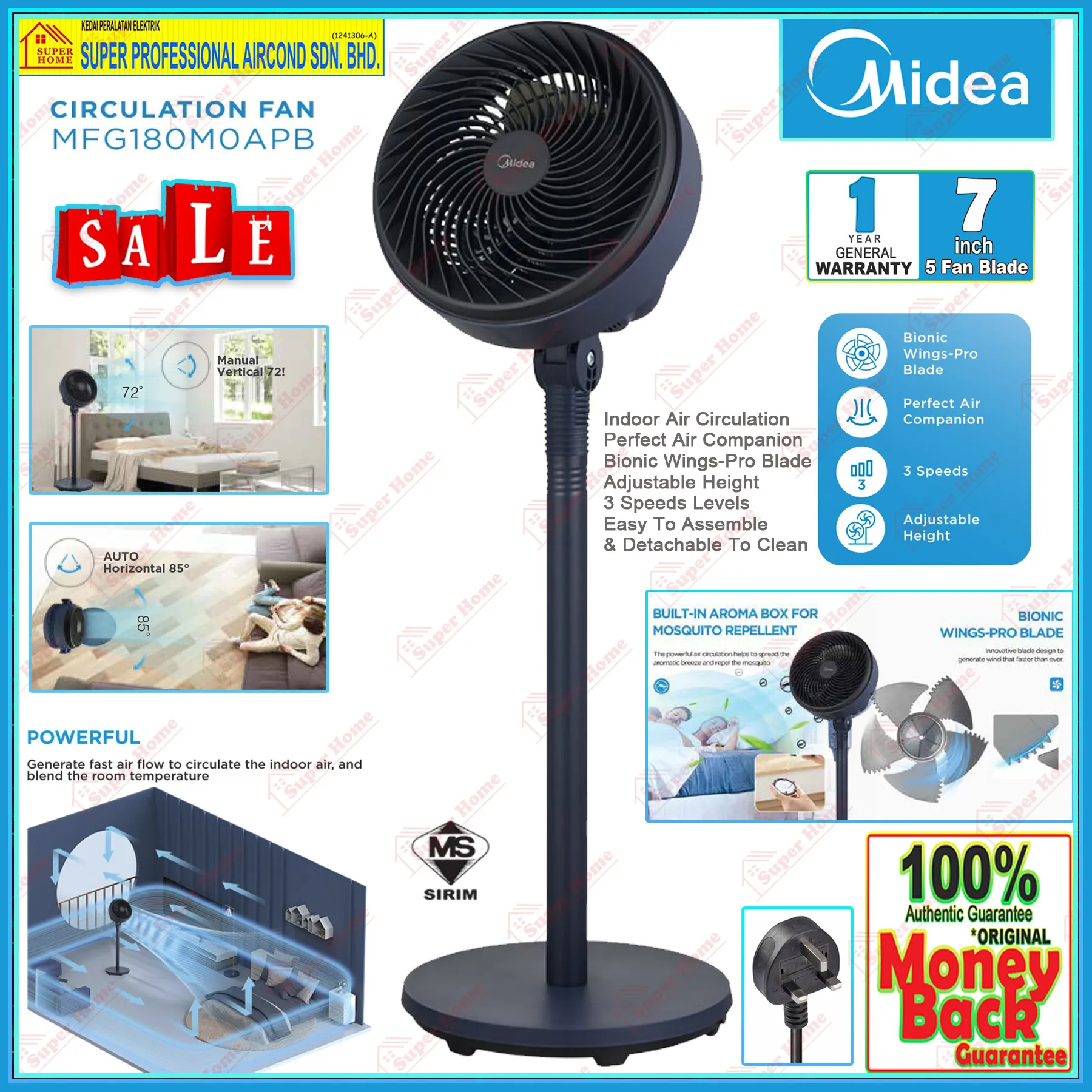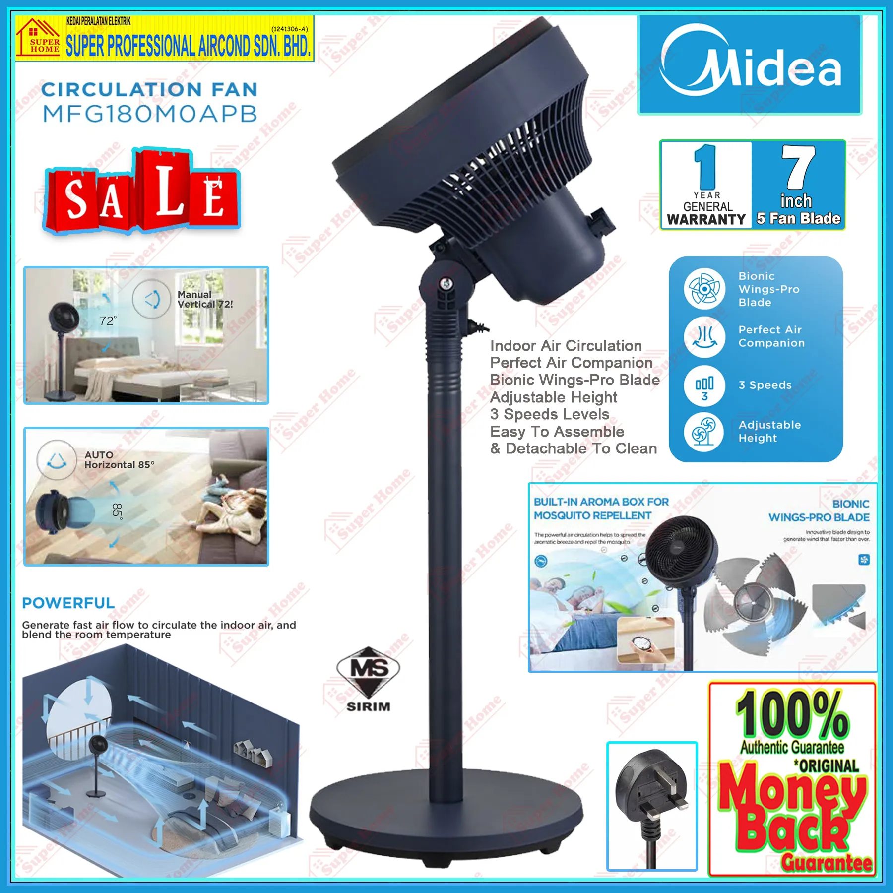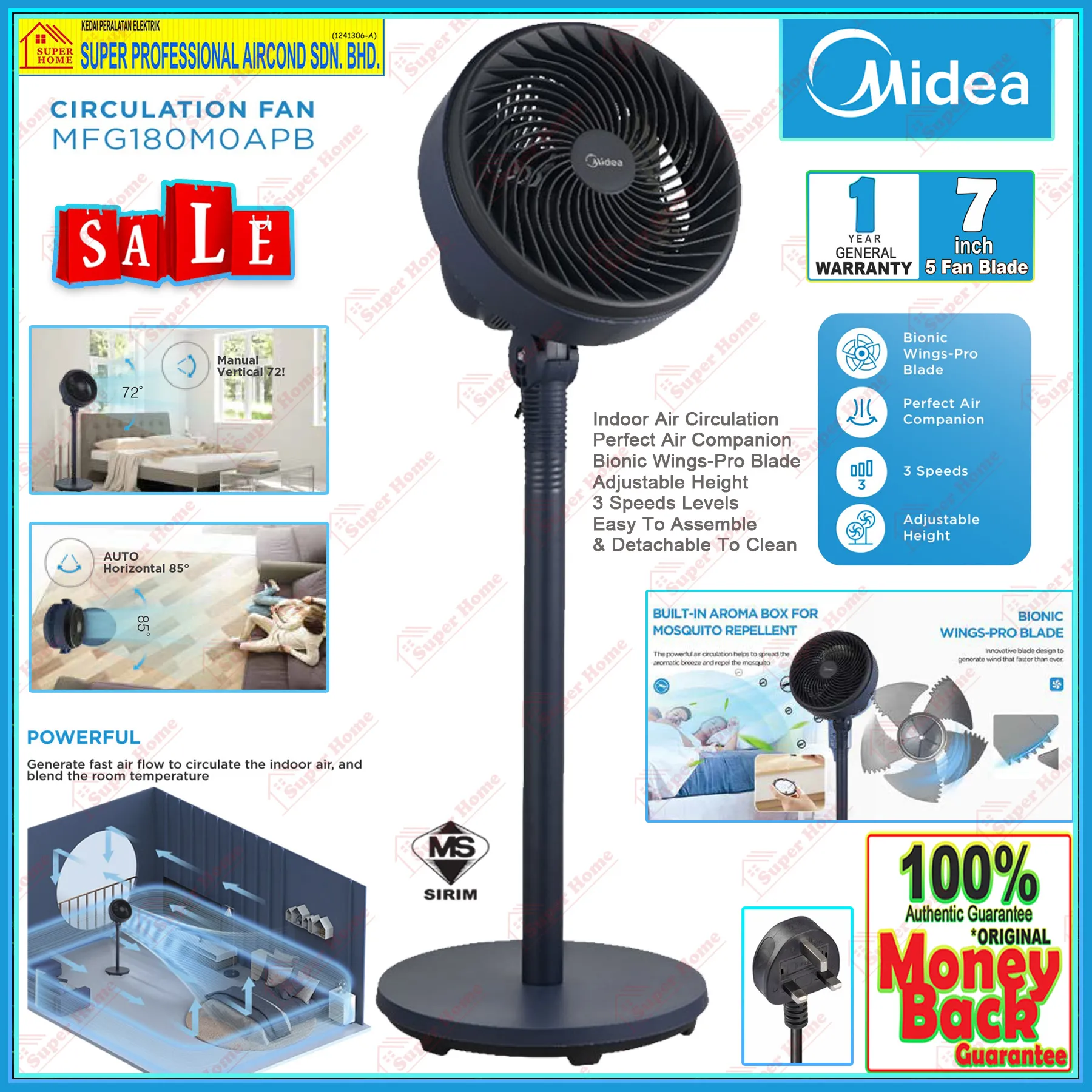 Selangor,Kuala Lumpur (KL),Petaling Jaya - Midea Circulation Stand Fan MFG180M0APB 5 Blades 7 Inch Circulation Fan With 3 Speed Levels / Table Fan