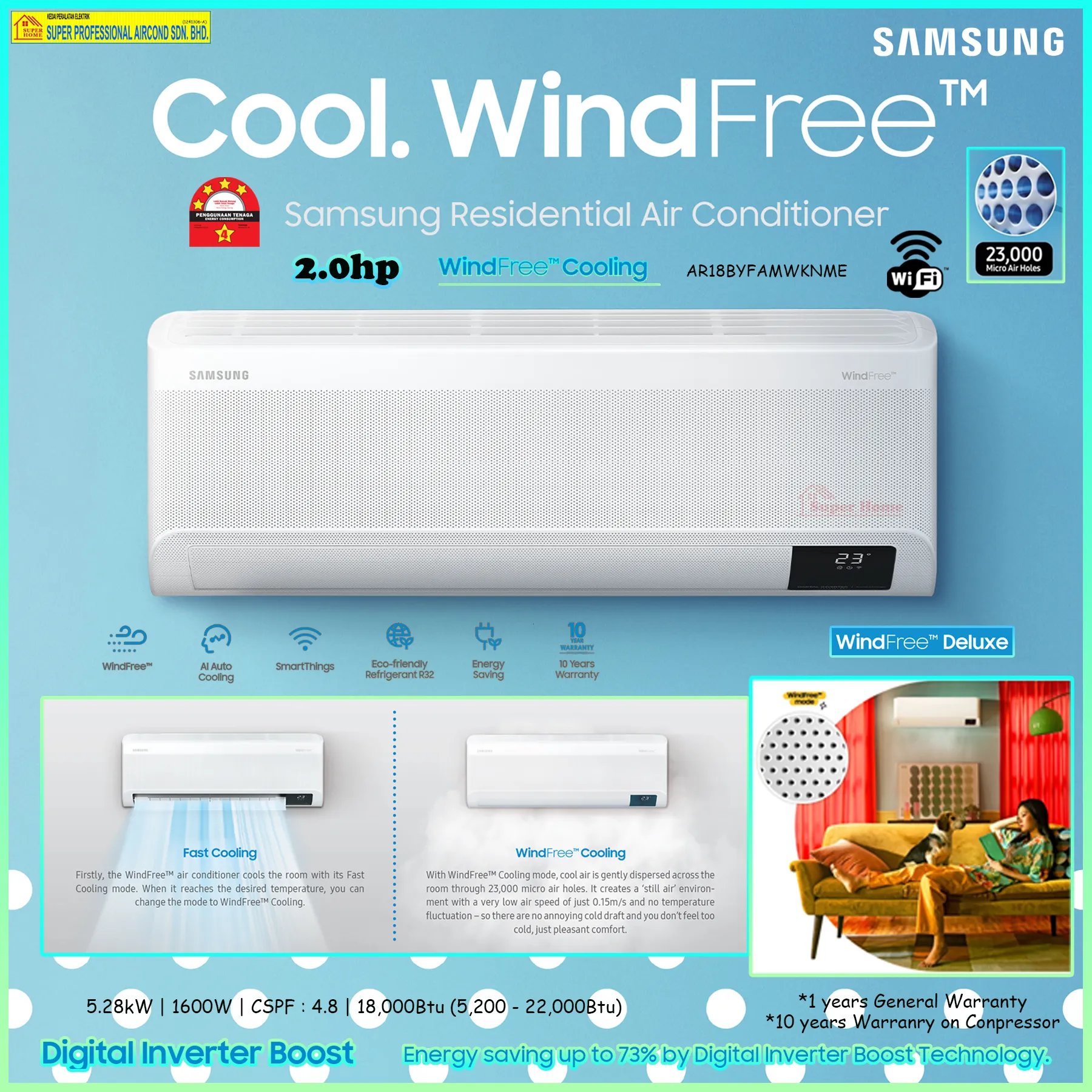 Specifications of Samsung Windfree 2.0hp Deluxe Inverter Aircond AR18BYFAMWKNME & AR18BYFAMWKXME ((Smart Control)) R32 Inverter Air Conditioner ((True comfort Windfree))