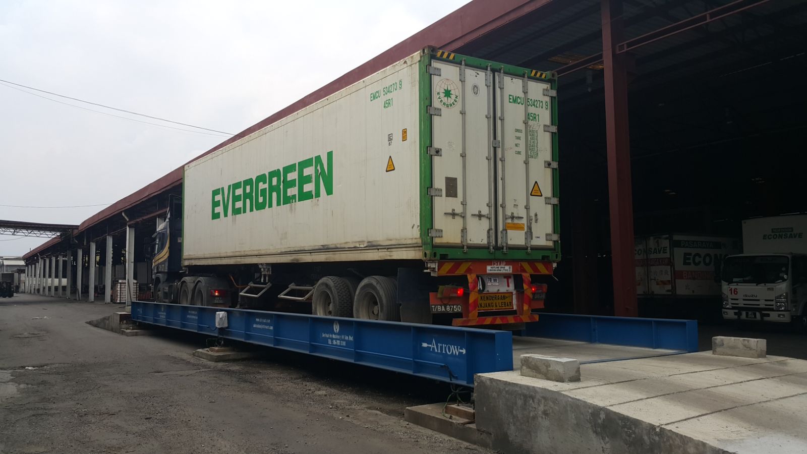 Sebaik sahaja lori memasuki jambatan timbang, sistem terus membaca nombor kontena secara automatik.