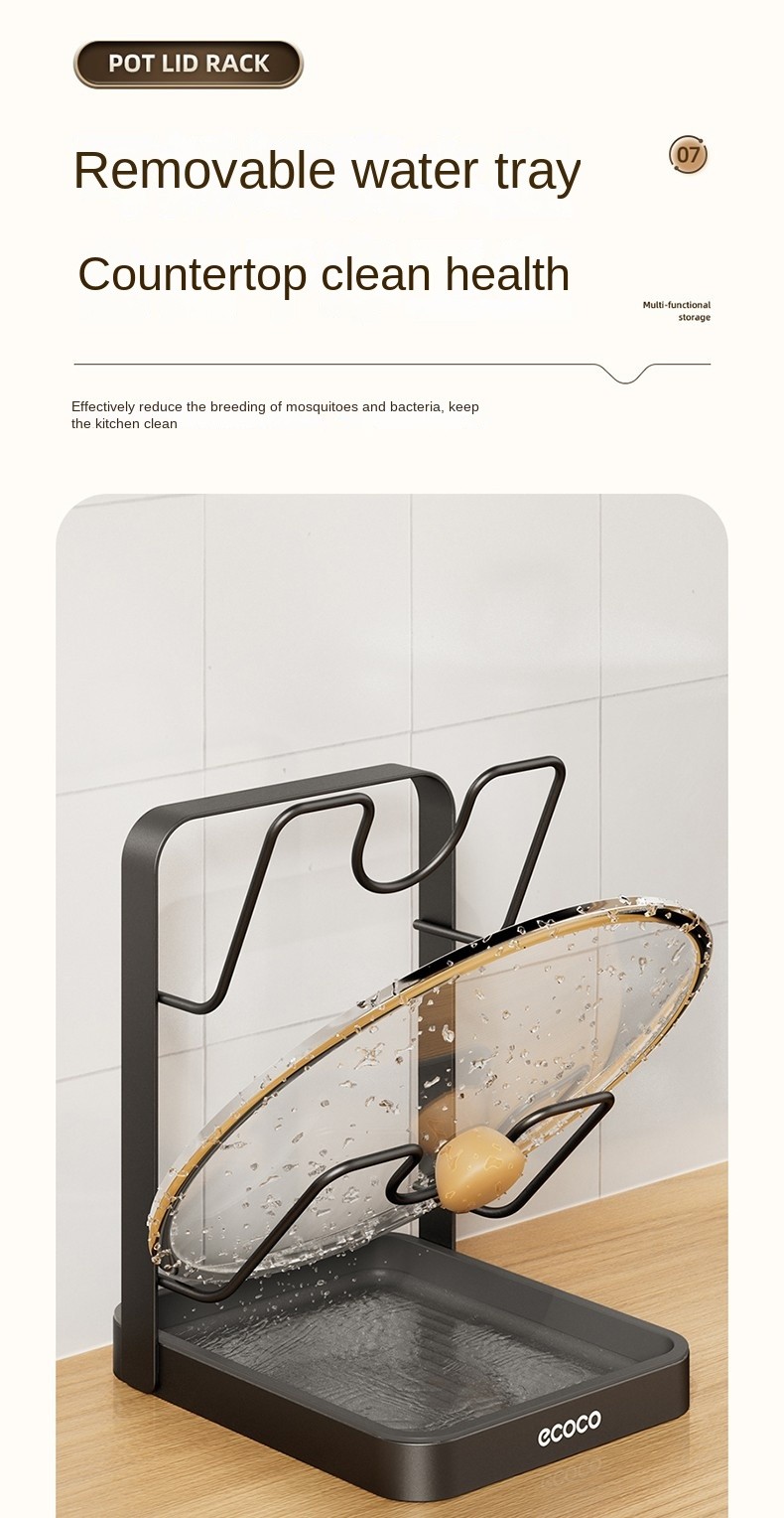 Penang,Butterworth - LODER ECOCO Kitchen Lid Organizer Rack Pot Cover Holder Cutting Board Stand with Drip Tray Storage for Countertop
